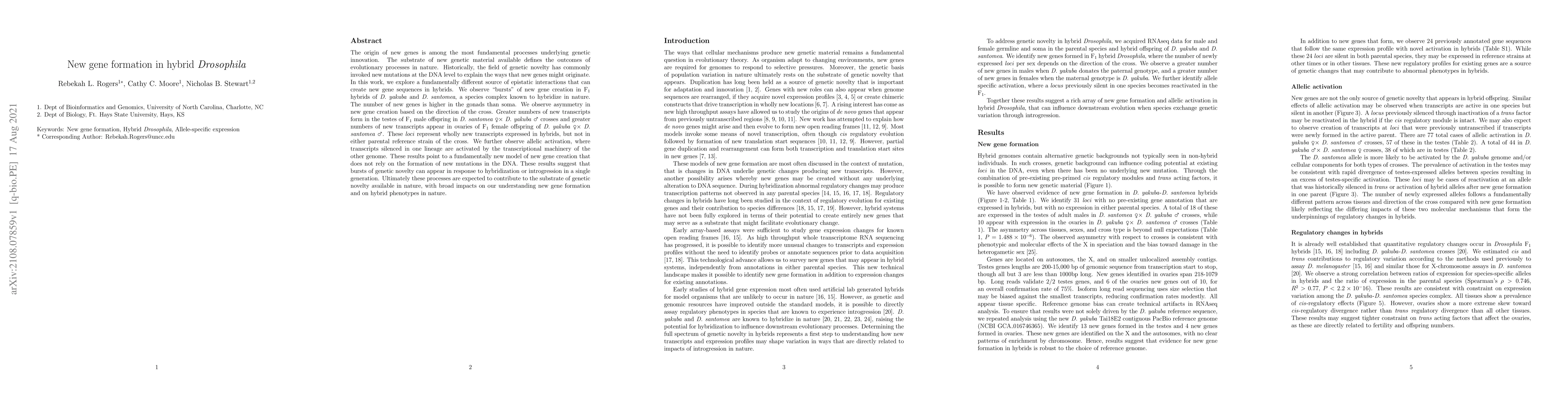 Researchers discovered new gene formation in hybrid Drosophila through non-mutational mechanisms, including epistatic interactions that create wholly new transcripts in response to hybridization. This finding challenges traditional views of genetic novelty and suggests a new model for the origin of new genes.