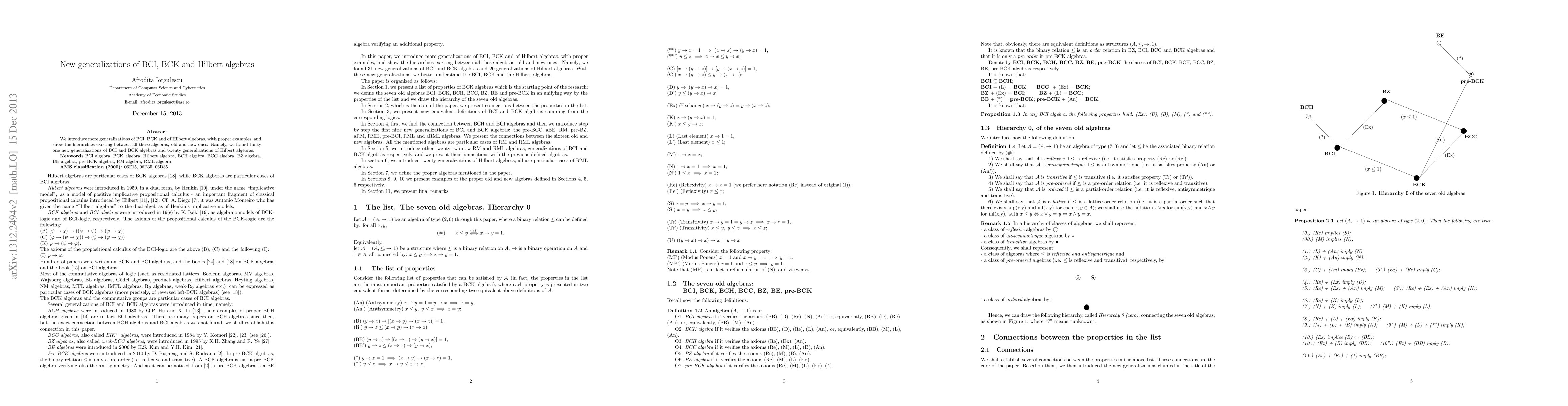 This paper introduces thirty-one new generalizations of BCI and BCK algebras and twenty new generalizations of Hilbert algebras, along with examples and a detailed hierarchy illustrating the relationships between these algebraic structures.
