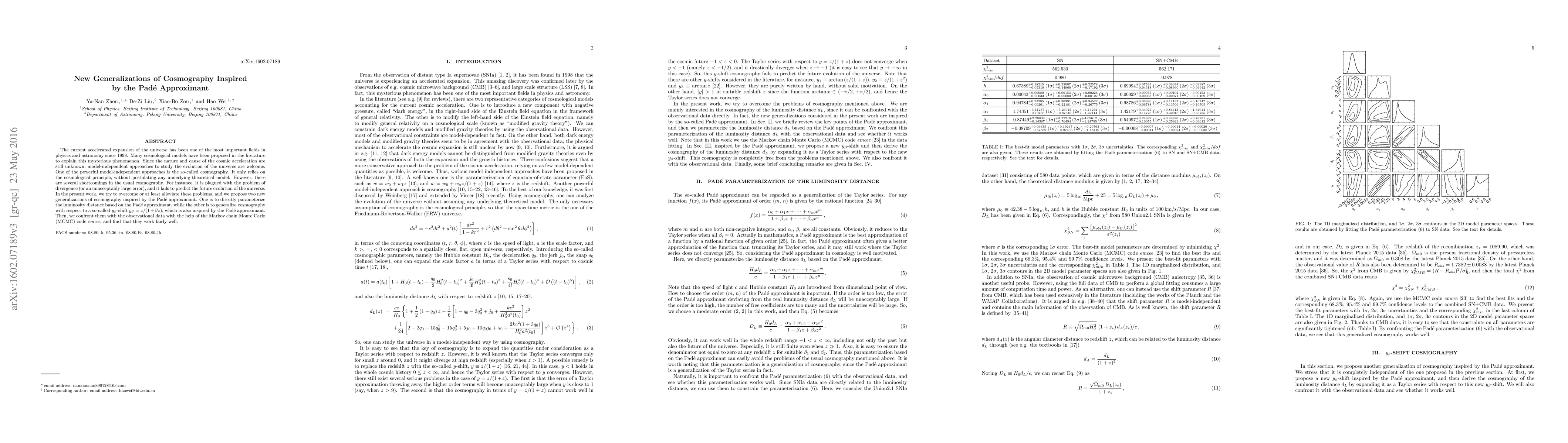 The current accelerated expansion of the universe has been one of the most important fields in physics and astronomy since 1998. Many cosmological models have been proposed in the literature to explain this mysterious phenomenon. Since the nature and cause of the cosmic acceleration are still unknown, model-independent approaches to study the evolution of the universe are welcome. One of the powerful model-independent approaches is the so-called cosmography. It only relies on the cosmological principle, without postulating any underlying theoretical model. However, there are several shortcomings in the usual cosmography. For instance, it is plagued with the problem of divergence (or an unacceptably large error), and it fails to predict the future evolution of the universe. In the present work, we try to overcome or at least alleviate these problems, and we propose two new generalizations of cosmography inspired by the Pad\'e approximant. One is to directly parameterize the luminosity distance based on the Pad\'e approximant, while the other is to generalize cosmography with respect to a so-called $y_\beta$-shift $y_\beta=z/(1+\beta z)$, which is also inspired by the Pad\'e approximant. Then, we confront them with the observational data with the help of the Markov chain Monte Carlo (MCMC) code emcee, and find that they work fairly well.