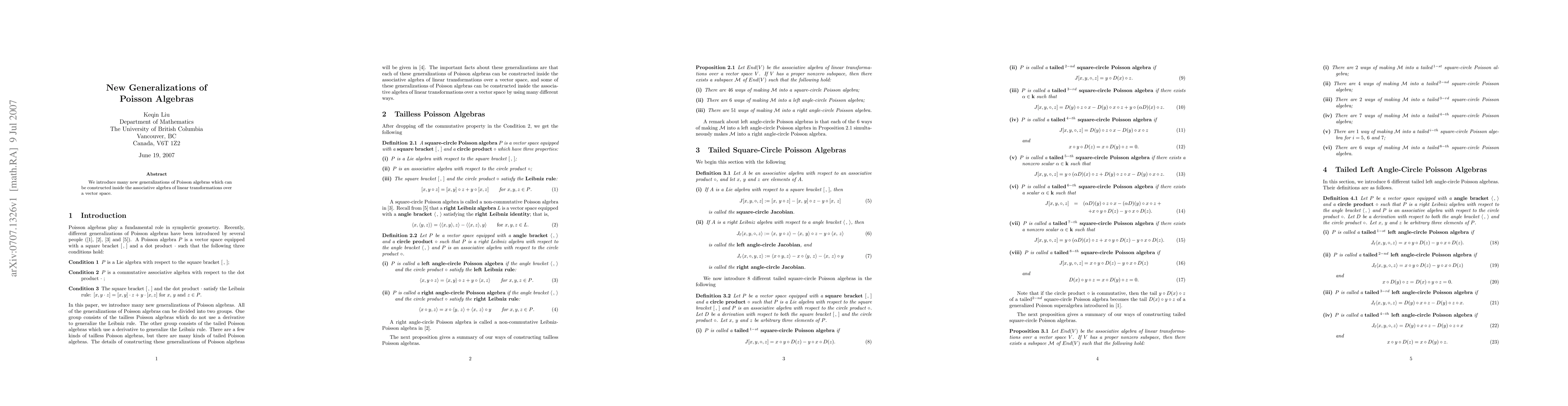 Researchers introduced new generalizations of Poisson algebras within linear transformations over a vector space, expanding our understanding of these mathematical structures.