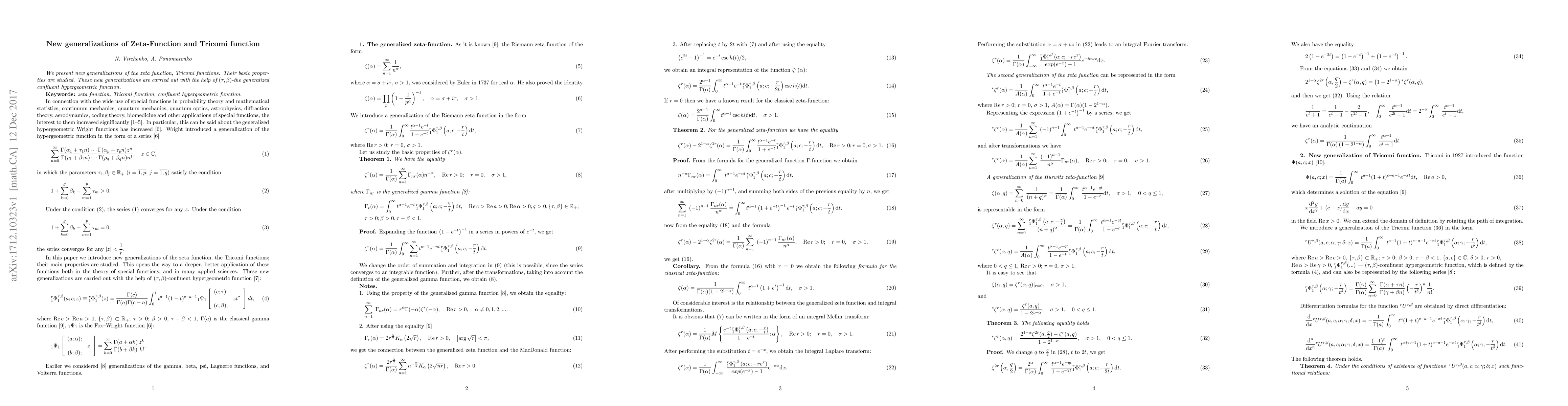 In this paper we introduce new generalizations of the zeta function, the Tricomi functions; their main properties are studied. This opens the way to a deeper, better application of these functions both in the theory of special functions, and in many applied sciences.