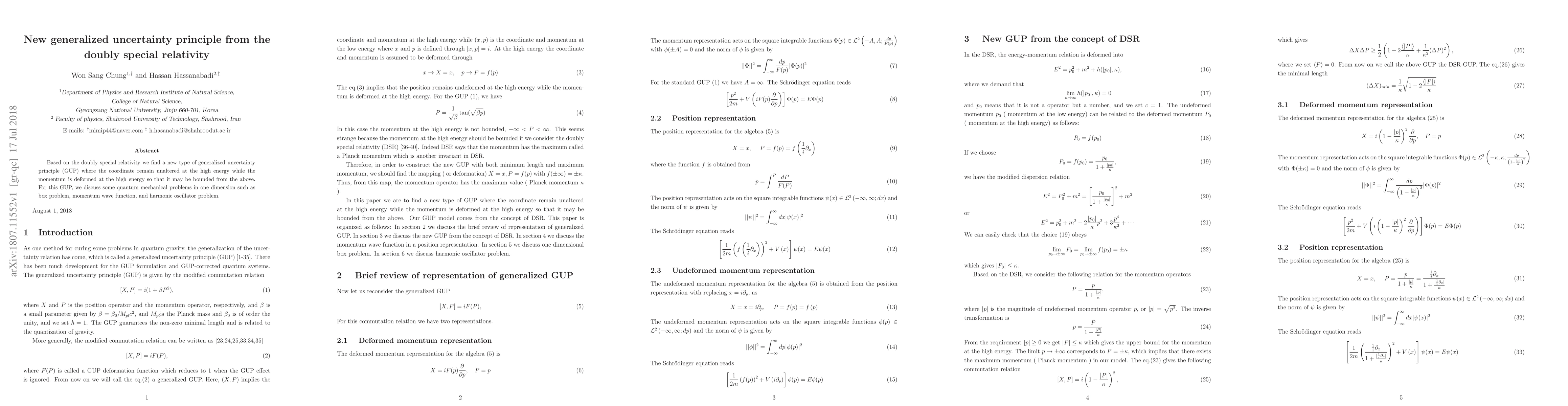 This paper proposes a new generalized uncertainty principle (GUP) derived from doubly special relativity, where high-energy conditions lead to unaltered coordinates but deformed, upper-bounded momentum. It examines quantum mechanical problems in one dimension, including the box problem, momentum wave function, and harmonic oscillator.