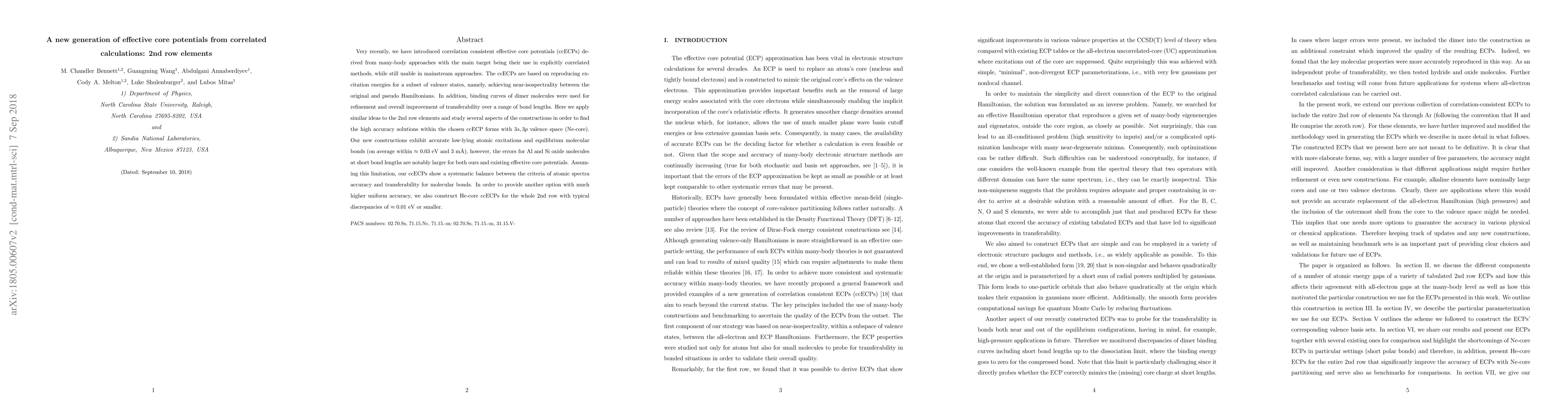 Researchers developed new effective core potentials for 2nd row elements with improved accuracy for atomic spectra and molecular bonds, offering a balance between spectrum accuracy and transferability.