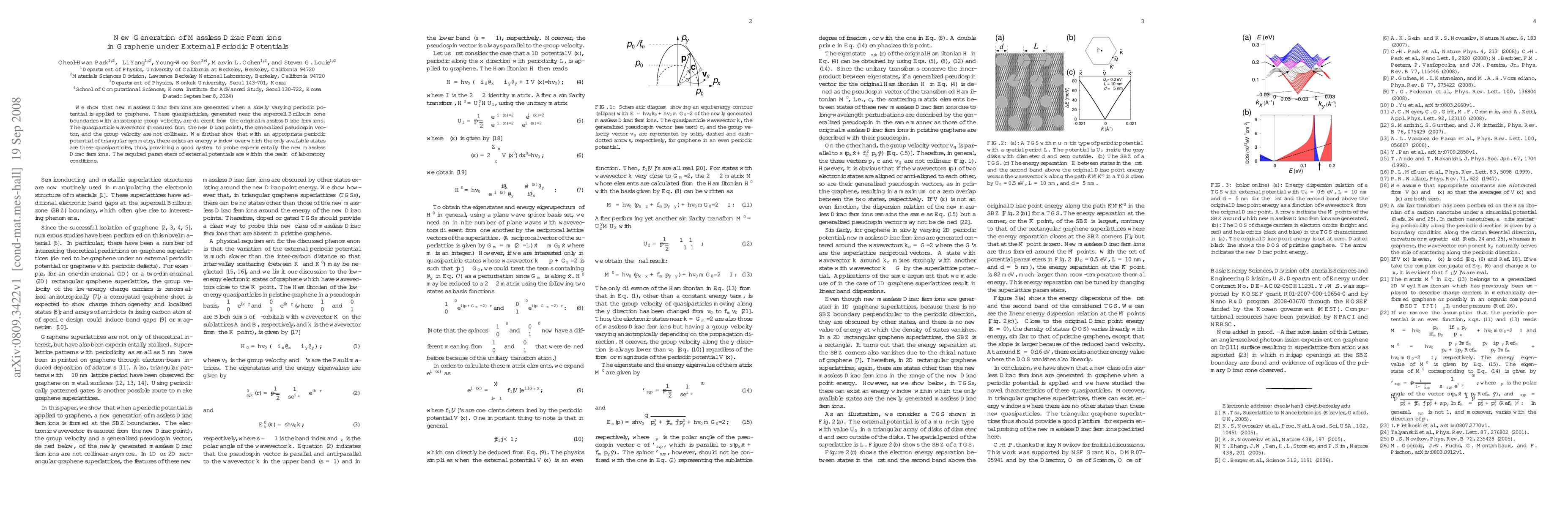 The study reveals that applying a slowly varying periodic potential to graphene generates new massless Dirac fermions with anisotropic group velocity and non-collinear quasiparticle wavevector. An appropriate triangular potential creates an energy window exclusively for these quasiparticles, offering a feasible experimental setup for their study.