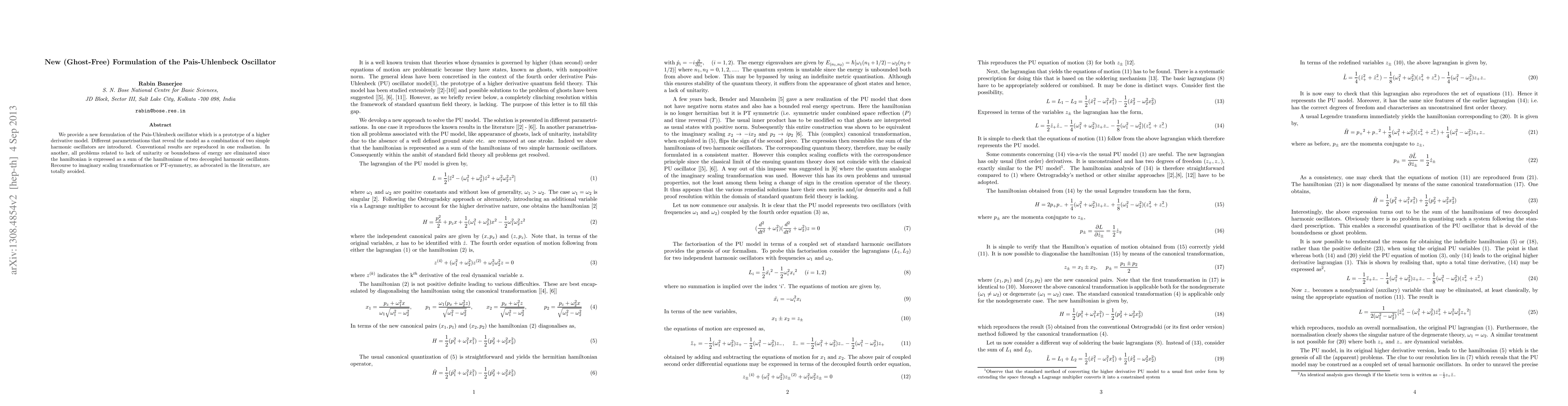 We provide a new formulation of the Pais-Uhlenbeck oscillator which is a prototype of a higher derivative model. Different parametrisations that reveal the model as a combination of two simple harmonic oscillators are introduced. Conventional results are reproduced in one realisation. In another, all problems related to lack of unitarity or boundedness of energy are eliminated since the hamiltonian is expressed as a sum of the hamiltonians of two decoupled harmonic oscillators. Recourse to imaginary scaling transformation or PT-symmetry, as advocated in the literature, are totally avoided.