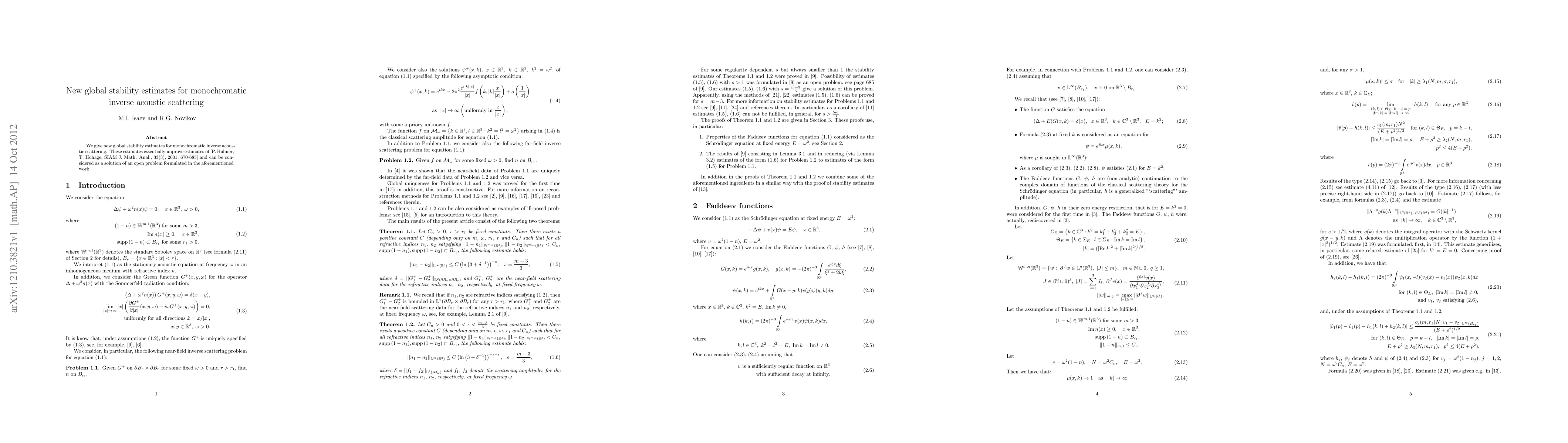 New global stability estimates improve previous work on monochromatic inverse acoustic scattering, providing more accurate solutions to an open problem in the field. These findings offer significant advancements in understanding and solving this complex mathematical problem.