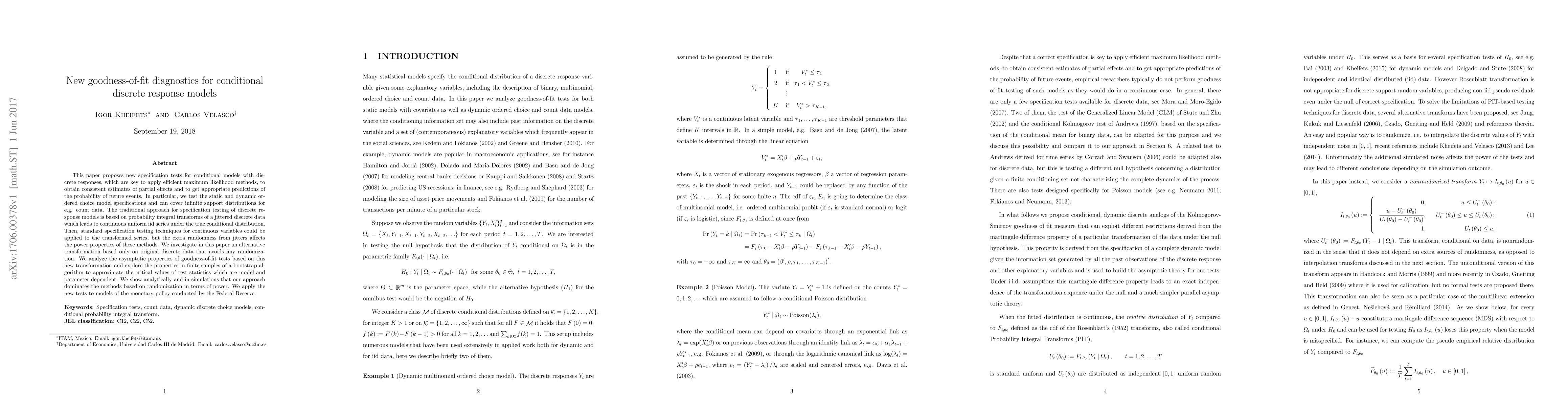This paper introduces new specification tests for conditional discrete response models, proposing an alternative transformation method that avoids randomization, thereby enhancing test power. The authors demonstrate superior performance over traditional methods through analytical and simulation-based comparisons, and apply the new tests to Federal Reserve monetary policy models.