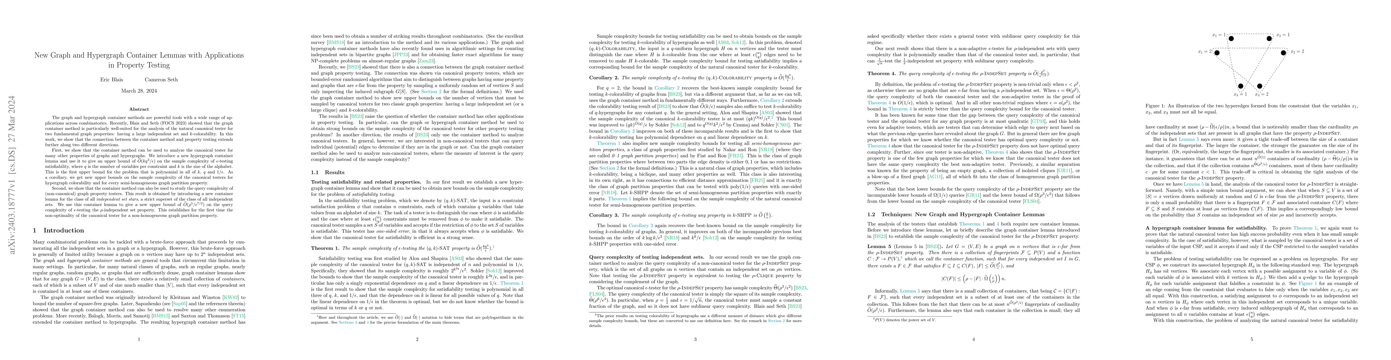 This paper extends the container method to analyze graph and hypergraph property testers, providing new upper bounds on sample and query complexities for testing properties like $k$-colorability, satisfiability, and independent set partitions. It introduces new container lemmas for hypergraphs and independent set stars, demonstrating their utility in property testing beyond canonical testers.