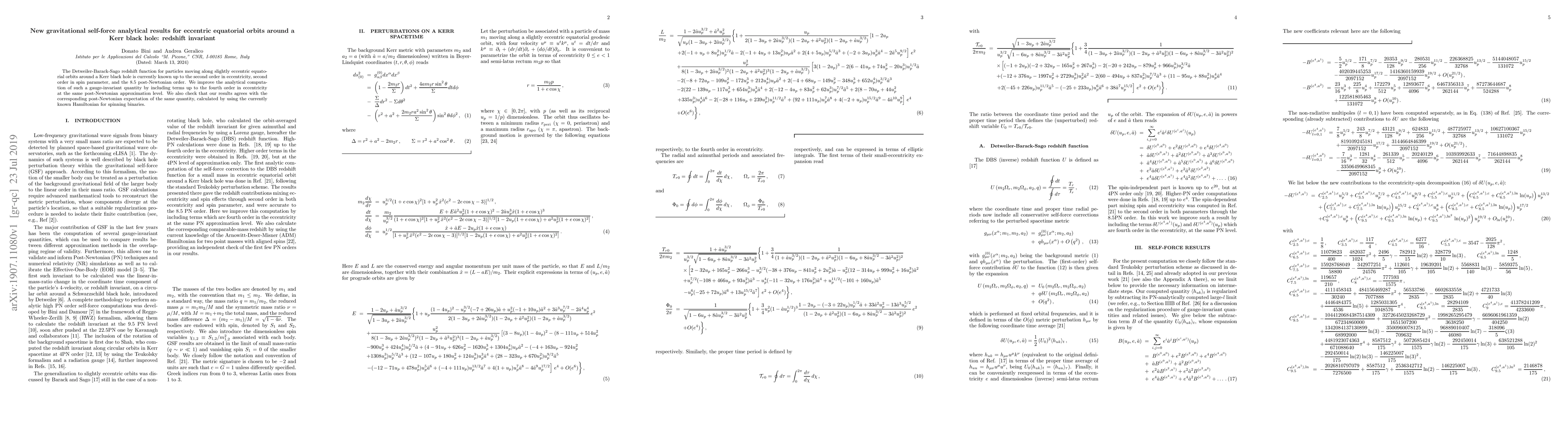 The Detweiler-Barack-Sago redshift function for particles moving along slightly eccentric equatorial orbits around a Kerr black hole is currently known up to the second order in eccentricity, second order in spin parameter, and the 8.5 post-Newtonian order. We improve the analytical computation of such a gauge-invariant quantity by including terms up to the fourth order in eccentricity at the same post-Newtonian approximation level. We also check that our results agrees with the corresponding post-Newtonian expectation of the same quantity, calculated by using the currently known Hamiltonian for spinning binaries.