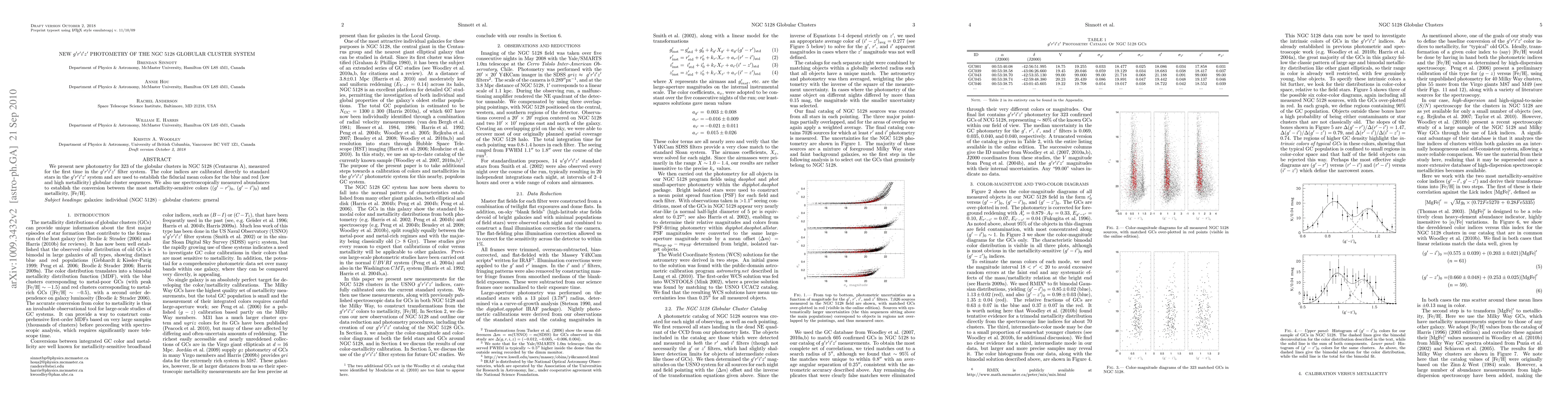This paper presents new photometry for 323 globular clusters in NGC 5128, helping to establish the colors of blue and red sequences and convert metallicity to color indices.