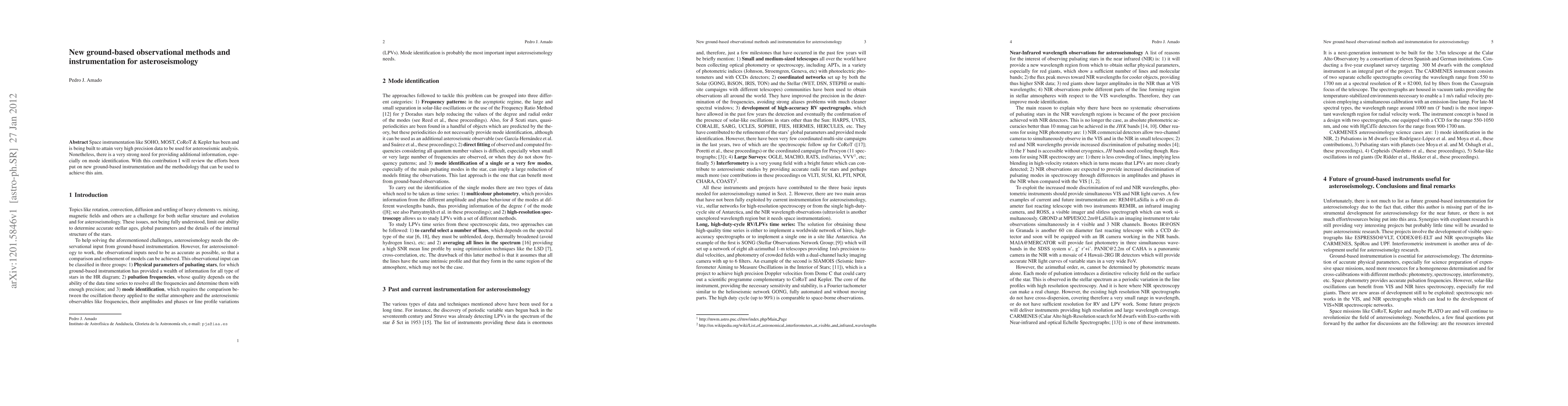 This paper reviews innovative ground-based observational methods and instrumentation designed to enhance asteroseismic analysis, complementing space-based missions, and focuses on improving mode identification for more precise stellar studies.