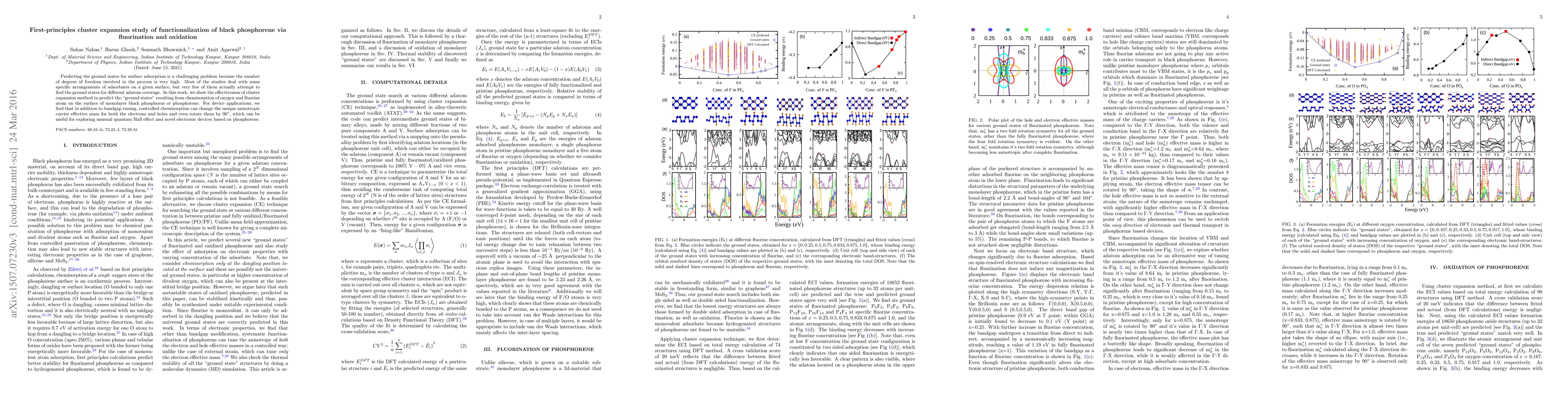 This paper investigates the chemical functionalization of monolayer black phosphorene through oxygen and fluorine chemisorption, revealing novel structural and electronic properties. The study finds that the bandgap behavior varies with fluorination and oxidation, and controlled chemisorption can alter the anisotropic free-carrier effective mass, potentially enabling new quantum Hall effects and electronic devices.
