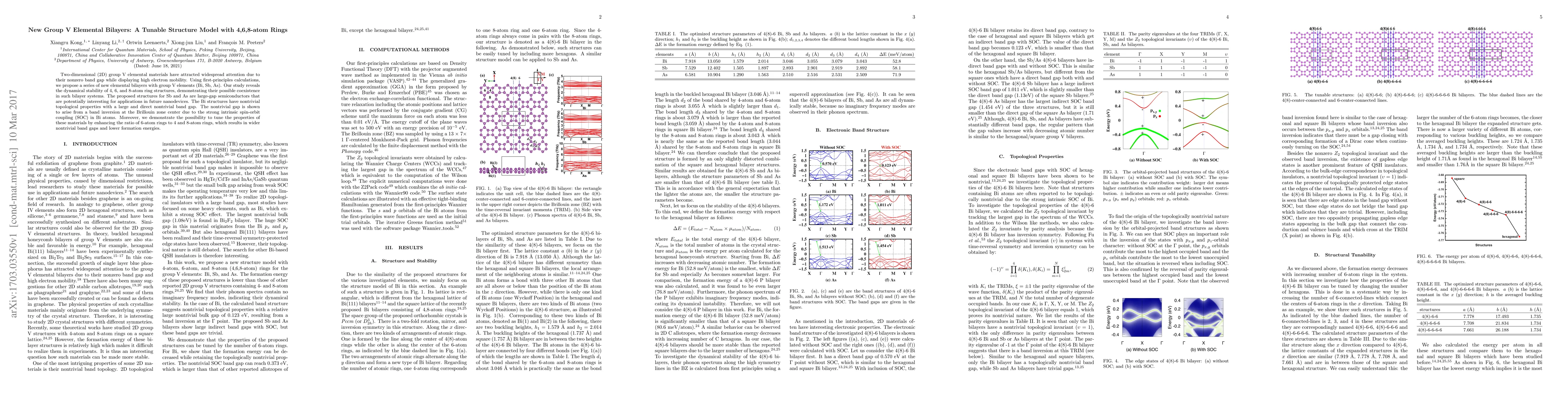 Two-dimensional (2D) group V elemental materials have attracted widespread attention due to their nonzero band gap while displaying high electron mobility. Using first-principles calculations, we propose a series of new elemental bilayers with group V elements (Bi, Sb, As). Our study reveals the dynamical stability of 4, 6, and 8-atom ring structures, demonstrating their possible coexistence in such bilayer systems. The proposed structures for Sb and As are large-gap semiconductors that are potentially interesting for applications in future nanodevices. The Bi structures have nontrivial topological properties with a large and direct nontrivial band gap. The nontrivial gap is shown to arise from a band inversion at the Brillouin zone center due to the strong intrinsic spin-orbit coupling (SOC) in Bi atoms. Moreover, we demonstrate the possibility to tune the properties of these materials by enhancing the ratio of 6-atom rings to 4 and 8-atom rings, which results in wider nontrivial band gaps and lower formation energies.