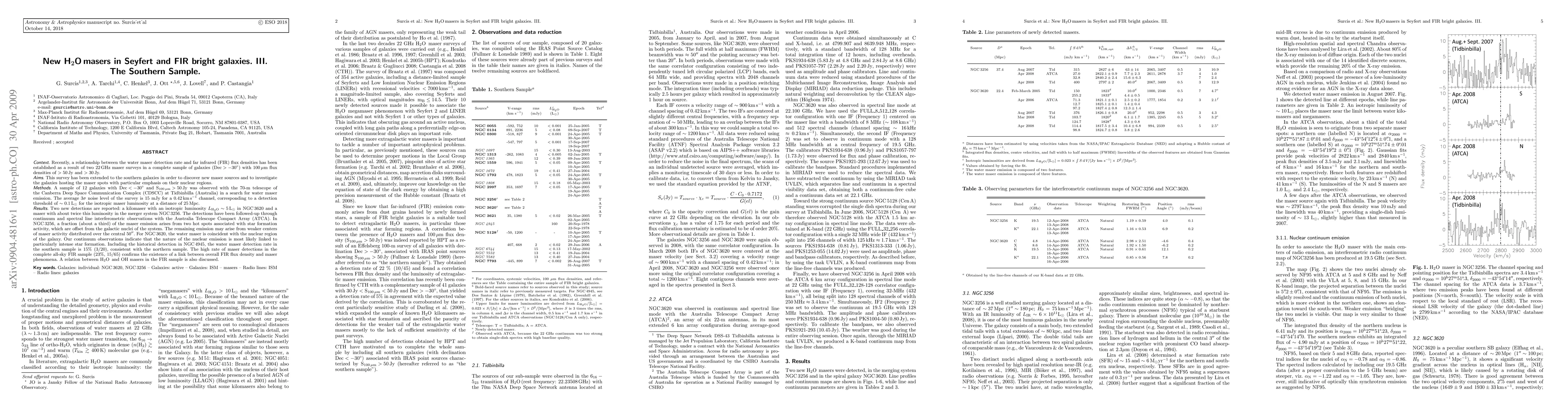 Recently, a relationship between the water maser detection rate and far infrared (FIR) flux densities has been established as a result of two 22 GHz maser surveys in a complete sample of galaxies (Dec>-30 degree) with 100 micron flux densities of > 50 Jy and > 30 Jy. This survey has been extended to the southern galaxies in order to discover new maser sources and to investigate the galaxies hosting the maser spots with particular emphasis on their nuclear regions. A sample of 12 galaxies with Dec<-30 degree and S(100 micron)>50 Jy was observed with the 70-m telescope of the Canberra Deep Space Communication Complex (CDSCC) at Tidbinbilla (Australia) in a search for water maser emission. The average 3 sigma noise level of the survey is 15 mJy for a 0.42 km/s channel, corresponding to a detection threshold of ~0.1 solar luminosities for the isotropic maser luminosity at a distance of 25 Mpc. Two new detections are reported: a kilomaser with an isotropic luminosity L_H2O ~5 solar luminosities in NGC3620 and a maser with about twice this luminosity in the merger system NGC3256. The detections have been followed-up through continuum and spectral line interferometric observations with the Australia Telescope Compact Array (ATCA). In NGC3256, a fraction (about a third) of the maser emission arises from two hot spots associated with star formation activity, which are offset from the galactic nuclei of the system. The remaining emission may arise from weaker centers of maser activity distributed over the central 50 arcsec. [abridged]