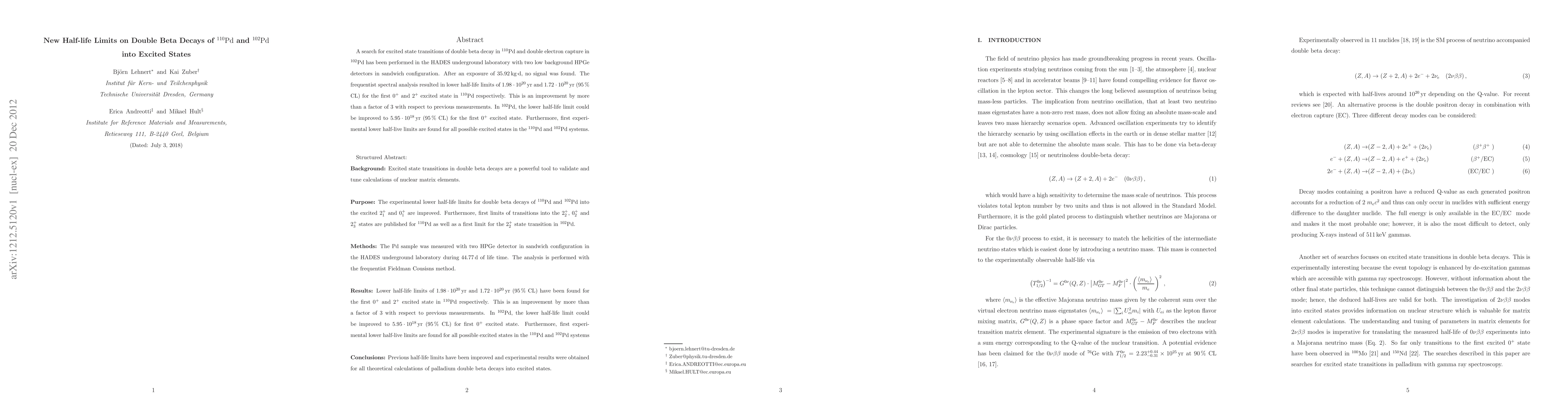 A search for excited state transitions of double beta decay in Pd110 and double electron capture in Pd102 has been performed in the HADES underground laboratory with two low background HPGe detectors in sandwich configuration. After an exposure of 35.92 kg*d, no signal was found. The frequentist spectral analysis resulted in lower half-life limits of 1.98e20 yr and 1.72e20 yr (95% CL) for the first 0+ and 2+ excited state in Pd110 respectively. This is an improvement by more than a factor of 3 with respect to previous measurements. In Pd102, the lower half-life limit could be improved to 5.95e18 yr (95% CL) for the first 0+ excited state. Furthermore, first experimental lower half-live limits are found for all possible excited states in the Pd110 and Pd102 systems.