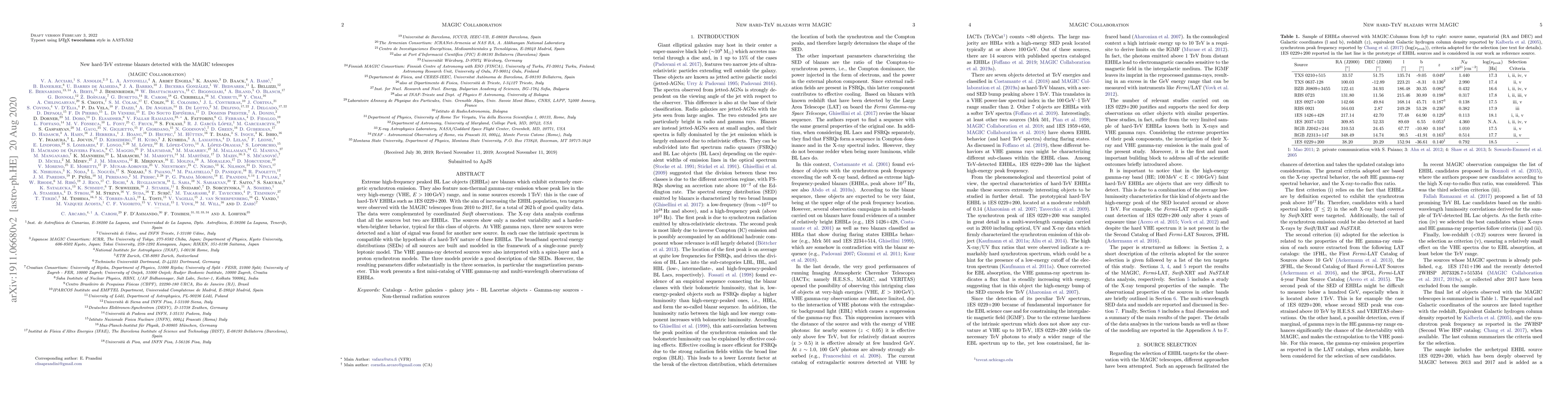 Extreme high-frequency peaked BL Lac objects (EHBLs) are blazars which exhibit extremely energetic synchrotron emission. They also feature non-thermal gamma-ray emission whose peak lies in the very high-energy (VHE, E > 100 GeV) range, and in some sources exceeds 1TeV: this is the case of hard-TeV EHBLs such as 1ES 0229+200. With the aim of increasing the EHBL population, ten targets were observed with the MAGIC telescopes from 2010 to 2017, for a total of 262 h of good quality data. The data were complemented by coordinated Swift observations. The X-ray data analysis confirms that all the sources but two are EHBLs. The sources show only a modest variability and a harder-when-brighter behavior, typical for this class of objects. At VHE gamma rays, three new sources were detected and a hint of signal was found for another new source. In each case the intrinsic spectrum is compatible with the hypothesis of a hard-TeV nature of these EHBLs. The broadband spectral energy distributions (SEDs) of all sources are built and modeled in the framework of a single-zone purely leptonic model. The VHE gamma-ray detected sources were also interpreted with a spine-layer and a proton synchrotron models. The three models provide a good description of the SEDs. However, the resulting parameters differ substantially in the three scenarios, in particular the magnetization parameter. This work presents a first mini-catalog of VHE gamma-ray and multi-wavelength observations of EHBLs.