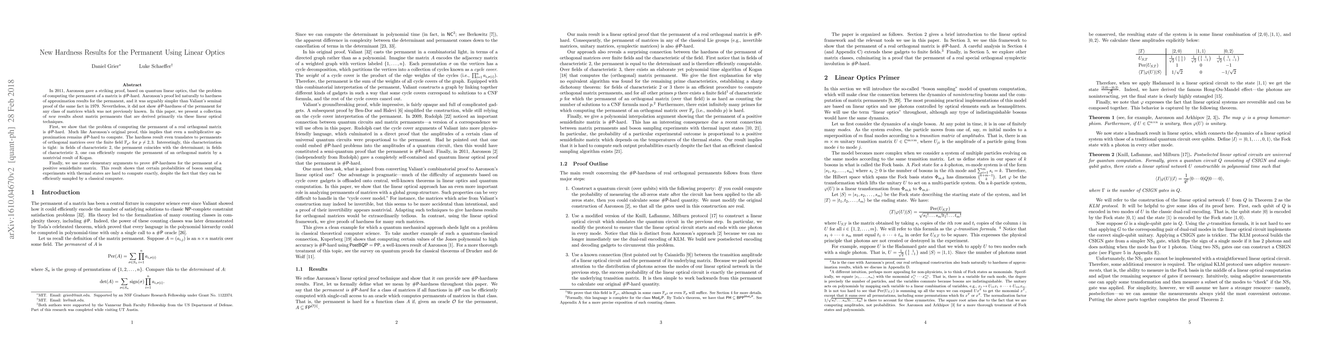 In 2011, Aaronson gave a striking proof, based on quantum linear optics, showing that the problem of computing the permanent of a matrix is #P-hard. Aaronson's proof led naturally to hardness of approximation results for the permanent, and it was arguably simpler than Valiant's seminal proof of the same fact in 1979. Nevertheless, it did not prove that computing the permanent was #P-hard for any class of matrices which was not previously known. In this paper, we present a collection of new results about matrix permanents that are derived primarily via these linear optical techniques. First, we show that the problem of computing the permanent of a real orthogonal matrix is #P-hard. Much like Aaronson's original proof, this will show that even a multiplicative approximation remains #P-hard to compute. The hardness result even translates to permanents over finite fields, where the problem of computing the permanent of an orthogonal matrix is ModpP-hard in the finite field F_{p^4} for all primes p not equal to 2 or 3. Interestingly, this characterization is tight: in fields of characteristic 2, the permanent coincides with the determinant; in fields of characteristic 3, one can efficiently compute the permanent of an orthogonal matrix by a nontrivial result of Kogan. Finally, we use more elementary arguments to prove #P-hardness for the permanent of a positive semidefinite matrix, which shows that certain probabilities of boson sampling experiments with thermal states are hard to compute exactly despite the fact that they can be efficiently sampled by a classical computer.