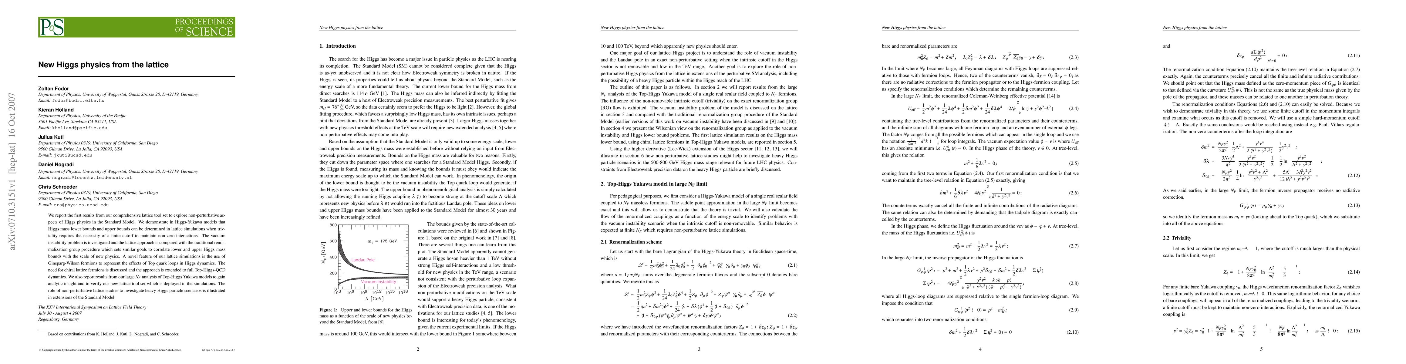 We report the first results from our comprehensive lattice tool set to explore non-perturbative aspects of Higgs physics in the Standard Model. We demonstrate in Higgs-Yukawa models that Higgs mass lower bounds and upper bounds can be determined in lattice simulations when triviality requires the necessity of a finite cutoff to maintain non-zero interactions. The vacuum instability problem is investigated and the lattice approach is compared with the traditional renormalization group procedure which sets similar goals to correlate lower and upper Higgs mass bounds with the scale of new physics. A novel feature of our lattice simulations is the use of Ginsparg-Wilson fermions to represent the effects of Top quark loops in Higgs dynamics. The need for chiral lattice fermions is discussed and the approach is extended to full Top-Higgs-QCD dynamics. We also report results from our large $N_F$ analysis of Top-Higgs Yukawa models to gain analytic insight and to verify our new lattice tool set which is deployed in the simulations. The role of non-perturbative lattice studies to investigate heavy Higgs particle scenarios is illustrated in extensions of the Standard Model.