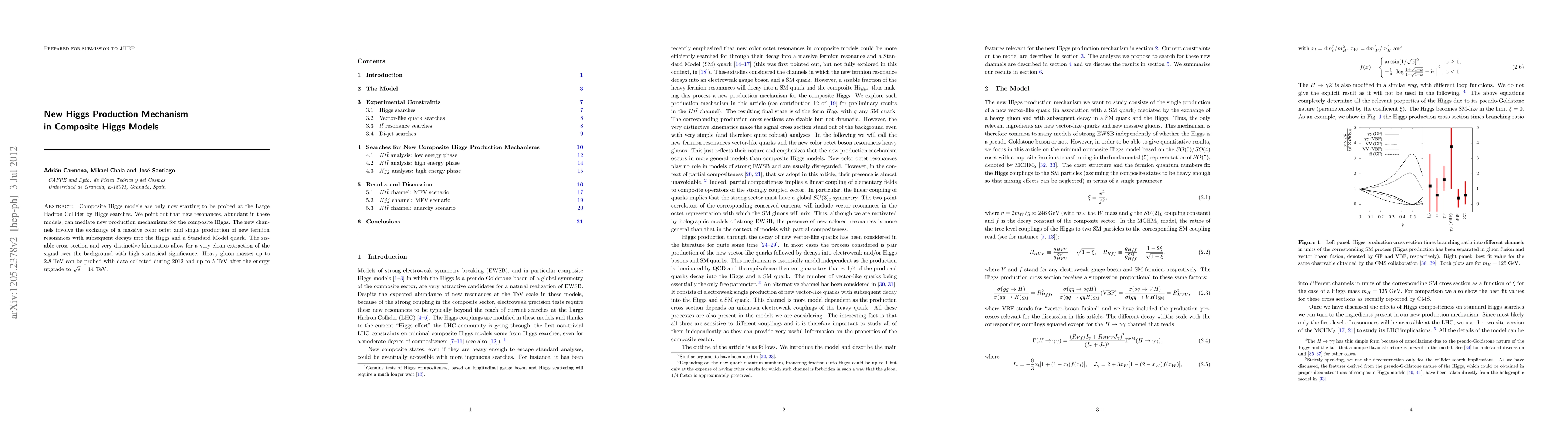 This paper explores new production mechanisms for composite Higgs models at the Large Hadron Collider, highlighting the role of new resonances in mediating these processes. These mechanisms, involving massive color octets and new fermion resonances, offer a clean signal with high statistical significance, enabling the probing of heavy gluon masses up to 5 TeV.