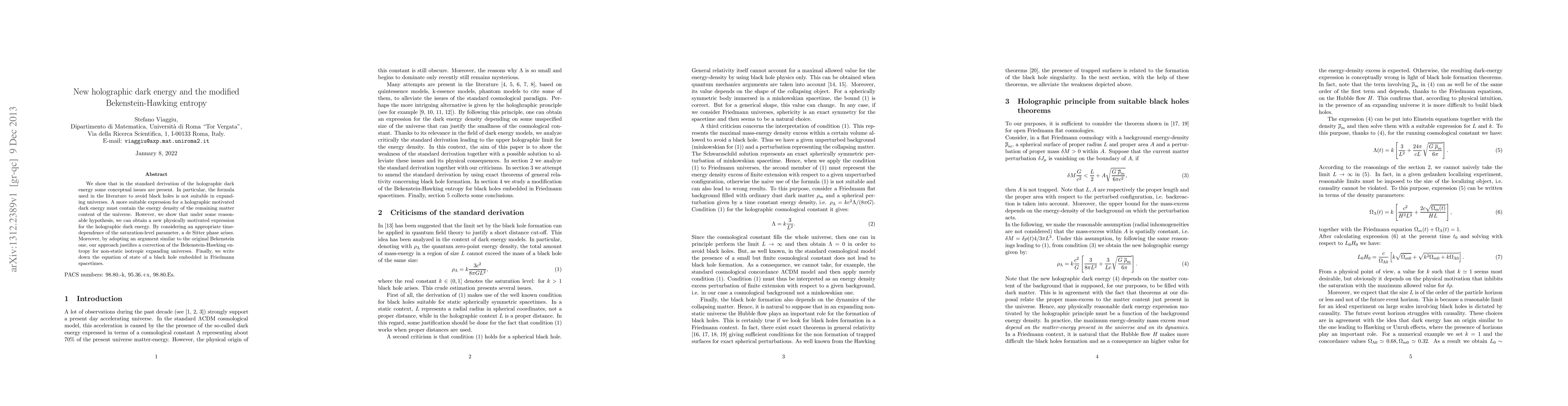 This paper proposes a new expression for holographic dark energy that addresses conceptual issues in its standard derivation, particularly in expanding universes. It also corrects the Bekenstein-Hawking entropy for non-static, expanding universes and derives the equation of state for a black hole in Friedmann spacetimes.