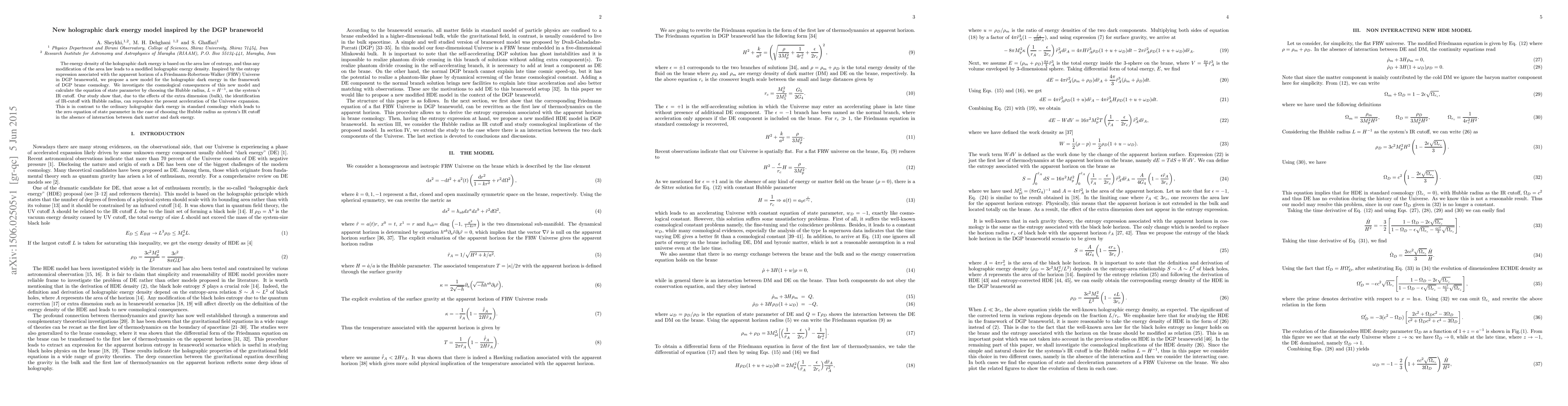 This paper proposes a new holographic dark energy model inspired by DGP braneworld, modifying the area law to incorporate the effects of an extra dimension. The model's equation of state parameter, calculated with the Hubble radius as the IR cutoff, can reproduce the observed acceleration of the universe's expansion, unlike the standard model.