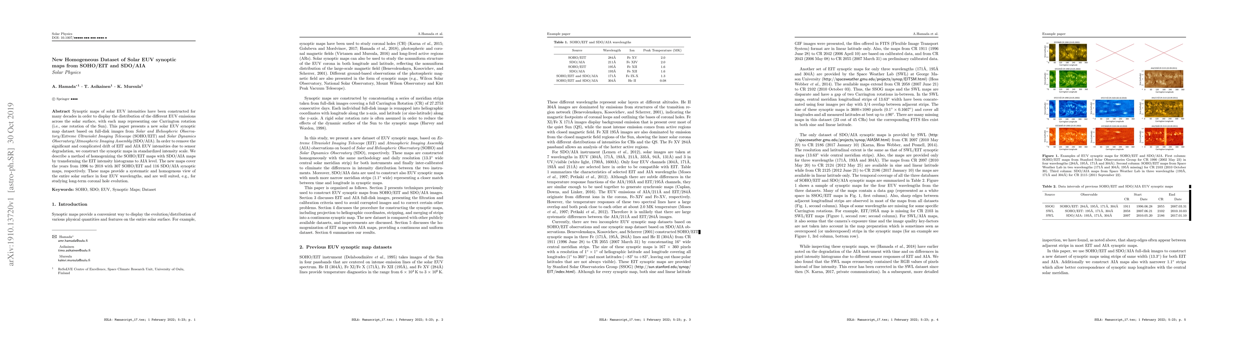 The research methodology involved constructing new solar EUV synoptic maps using full-disk images from SOHO/EIT and SDO/AIA, standardizing the maps in logarithmic intensity scale, and homogenizing SOHO/EIT maps to SDO/AIA levels by transforming EIT intensity histograms to AIA levels.