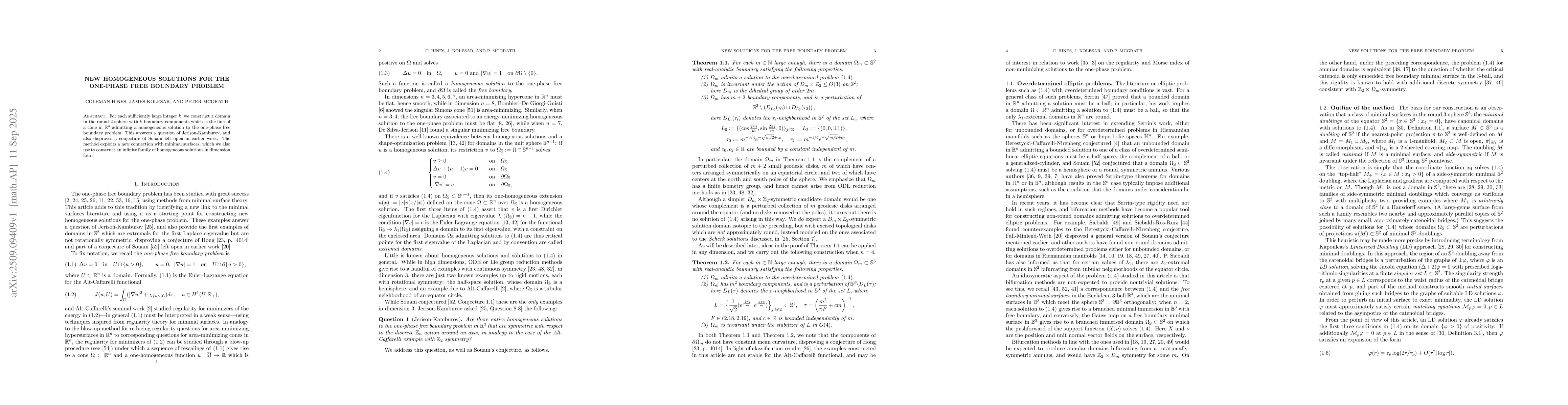 For each sufficiently large integer $k$, we construct a domain in the round $2$-sphere with $k$ boundary components which is the link of a cone in $\mathbb{R}^3$ admitting a homogeneous solution to the one-phase free boundary problem. This answers a question of Jerison-Kamburov, and also disproves a conjecture of Souam left open in earlier work. The method exploits a new connection with minimal surfaces, which we also use to construct an infinite family of homogeneous solutions in dimension four.