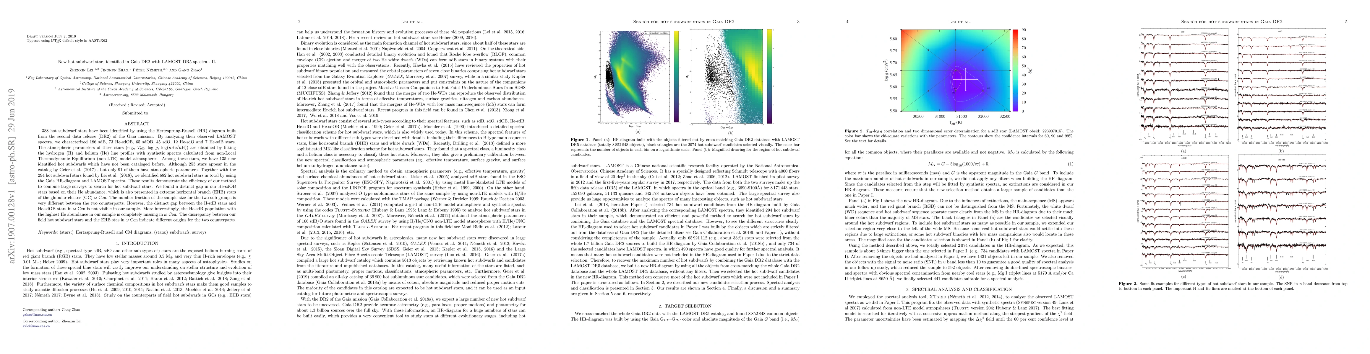 This paper identifies 388 hot subdwarf stars using Gaia DR2 data and LAMOST DR5 spectra, characterizing 682 stars in total. It highlights a distinct gap in He-sdOB stars' helium abundance, suggesting different origins for field hot subdwarfs compared to EHB stars in the globular cluster ω Cen.