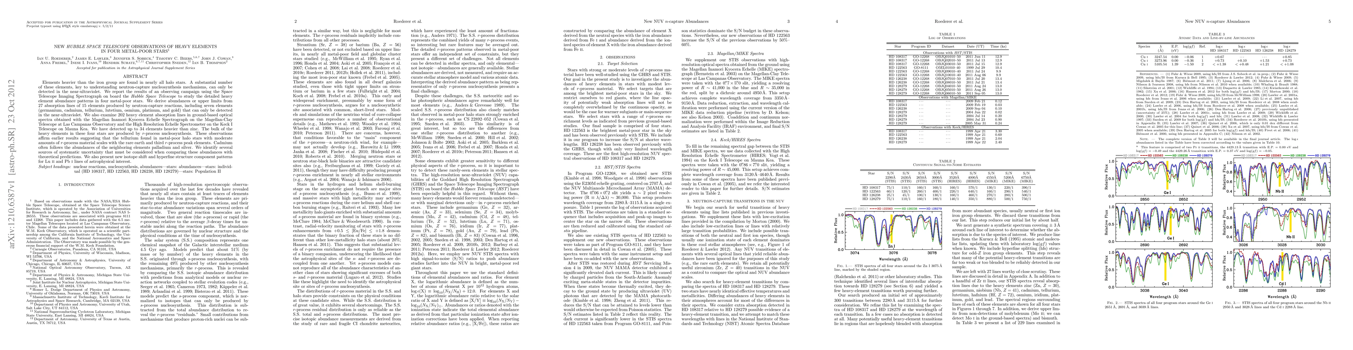 This study uses Hubble Space Telescope observations to analyze heavy element abundances in four metal-poor stars, detecting up to 34 elements heavier than zinc, primarily produced by r-process nucleosynthesis. The findings support the correlation between tellurium and rare earth elements, and highlight the systematic uncertainties in comparing these results with theoretical models.