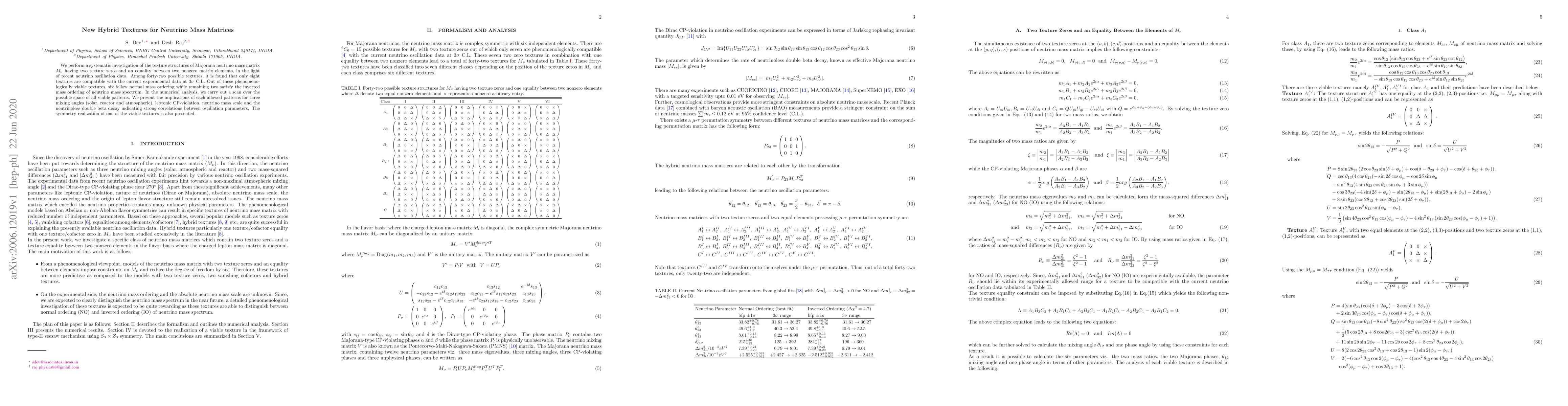 The paper presents a detailed analysis of neutrino mass matrix textures with two zeros and one equality, deriving specific relations for mixing angles and CP-violating phases.