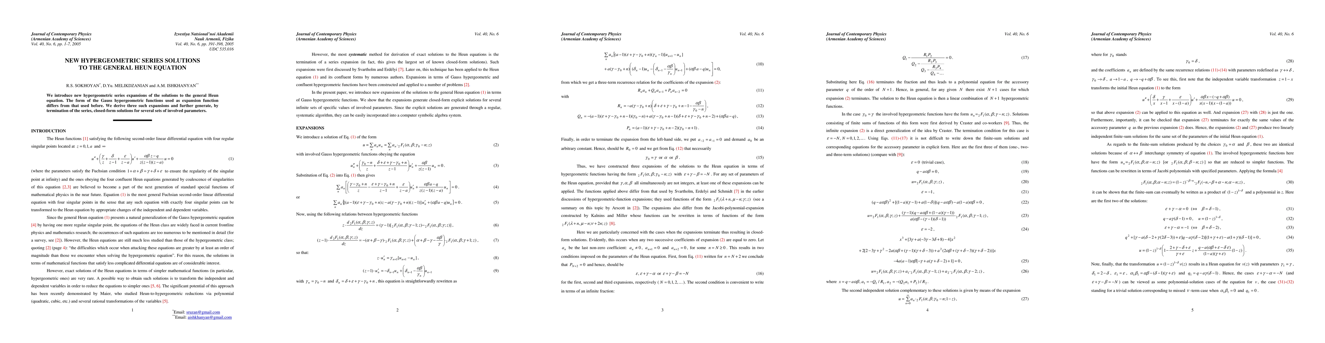 This paper presents new hypergeometric series solutions for the general Heun equation using Gauss hypergeometric functions in a different form than previously used. It derives three expansions and provides closed-form solutions for specific parameter sets by terminating the series.