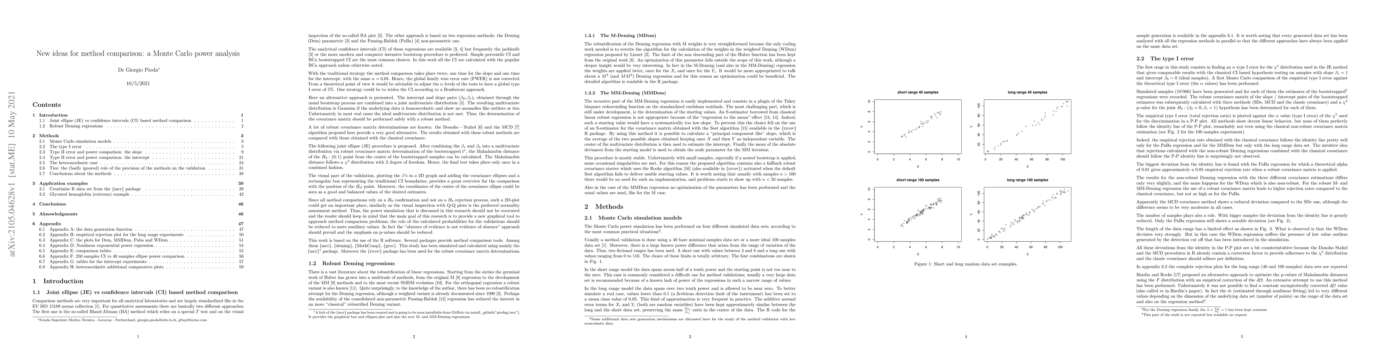 In this paper some new proposals for method comparison are presented. On the one hand, two new robust regressions, the M-Deming and the MM-Deming, have been developed by modifying Linnet's method of the weighted Deming regression. The M-Deming regression shows superior qualities to the Passing-Bablok regression; it does not suffer from bias when the data to be validated have a reduced precision, and therefore turns out to be much more reliable. On the other hand, a graphical method (box and ellipses) for validations has been developed which is also equipped with a unified statistical test. In this test the intercept and slope pairs obtained from a bootstrap process are combined into a multinomial distribution by robust determination of the covariance matrix. The Mahalanobis distance from the point representing the null hypothesis is evaluated using the $\chi^{2}$ distribution. It is emphasized that the interpretation of the graph is more important than the probability obtained from the test. The unified test has been evaluated through Monte Carlo simulations, comparing the theoretical $\alpha$ levels with the empirical rate of rejections (type-I errors). In addition, a power comparison of the various (new and old) methods was conducted using the same techniques. This unified method, regardless of the regression chosen, shows much higher power and allows a significant reduction in the sample size required for validations.