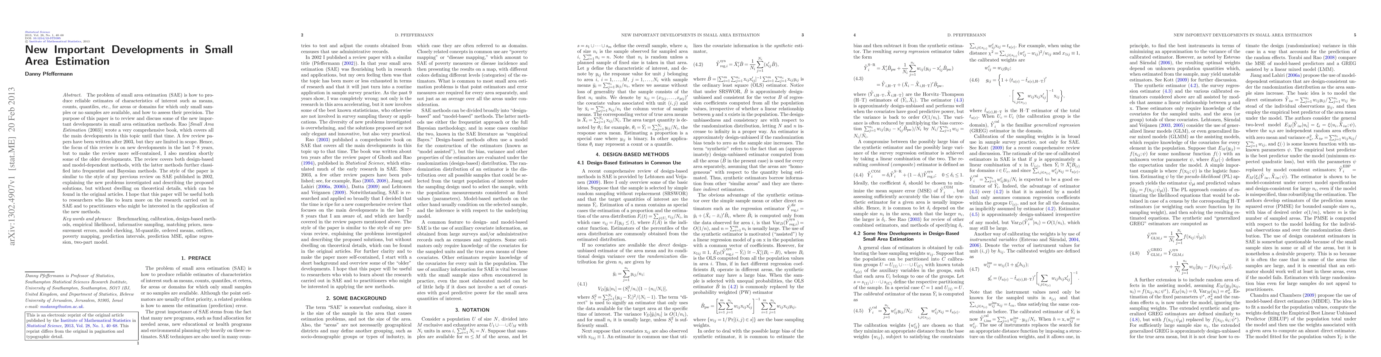 This paper reviews recent developments in small area estimation methods, covering design-based and model-dependent approaches, and highlights new solutions for reliable estimates of characteristics from limited data.