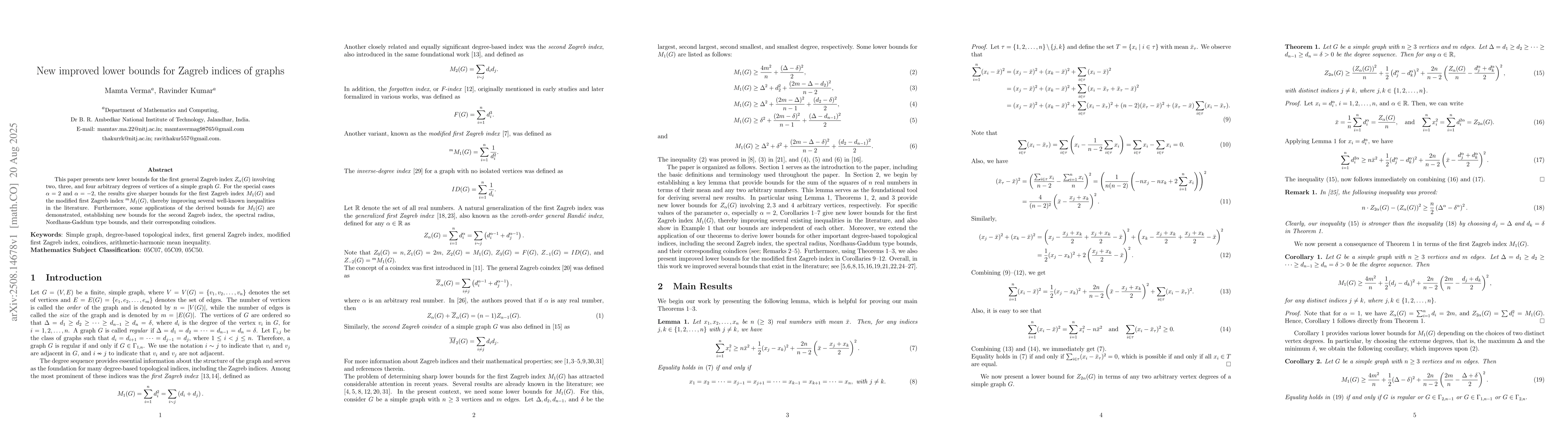 The paper introduces new mathematical inequalities and proofs for Zagreb indices, enhancing the existing literature on topological indices in graph theory.