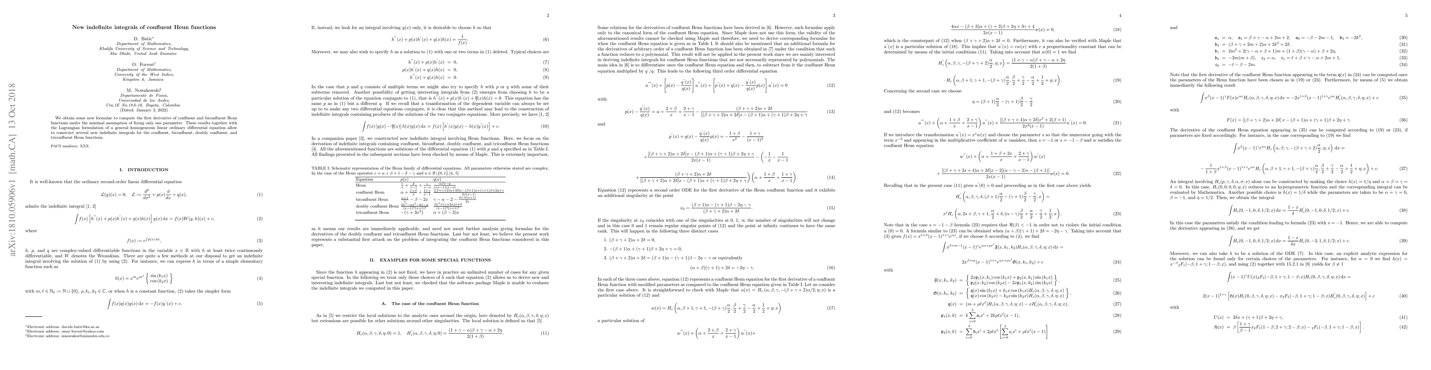 We obtain some new formulae to compute the first derivative of confluent and biconfluent Heun functions under the minimal assumption of fixing only one parameter. These results together with the Lagrangian formulation of a general homogeneous linear ordinary differential equation allow to construct several new indefinite integrals for the confluent, biconfluent, doubly confluent, and triconfluent Heun functions.