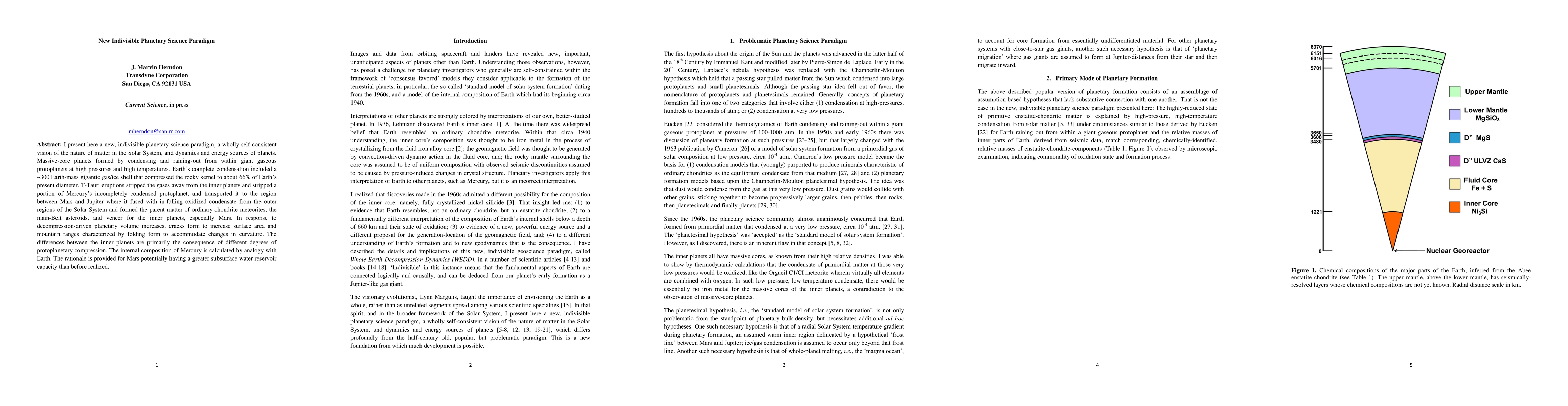 I present here a new, indivisible planetary science paradigm, a wholly self-consistent vision of the nature of matter in the Solar System, and dynamics and energy sources of planets. Massive-core planets formed by condensing and raining-out from within giant gaseous protoplanets at high pressures and high temperatures. Earth's complete condensation included a 300 Earth-mass gigantic gas/ice shell that compressed the rocky kernel to about 66% of Earth's present diameter. T-Tauri eruptions stripped the gases away from the inner planets and stripped a portion of Mercury's incompletely condensed protoplanet, and transported it to the region between Mars and Jupiter where it fused with in-falling oxidized condensate from the outer regions of the Solar System and formed the parent matter of ordinary chondrite meteorites, the main-Belt asteroids, and veneer for the inner planets, especially Mars. In response to decompression-driven planetary volume increases, cracks form to increase surface area and mountain ranges characterized by folding form to accommodate changes in curvature. The differences between the inner planets are primarily the consequence of different degrees of protoplanetary compression. The internal composition of Mercury is calculated by analogy with the Earth. The rationale is provided for Mars potentially having a greater subsurface water reservoir capacity than before realized.