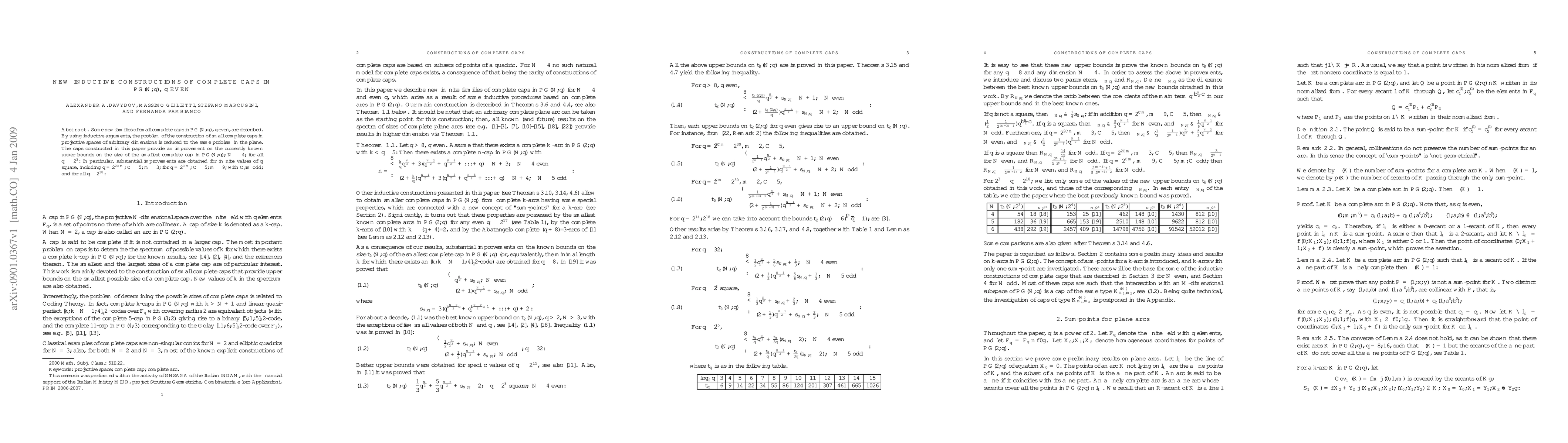 This paper introduces new inductive methods to construct small complete caps in even-order projective spaces, improving existing upper bounds on their sizes for dimensions $N\geq 4$ and various even $q$ values, especially for large square and odd multiples of powers of 2.