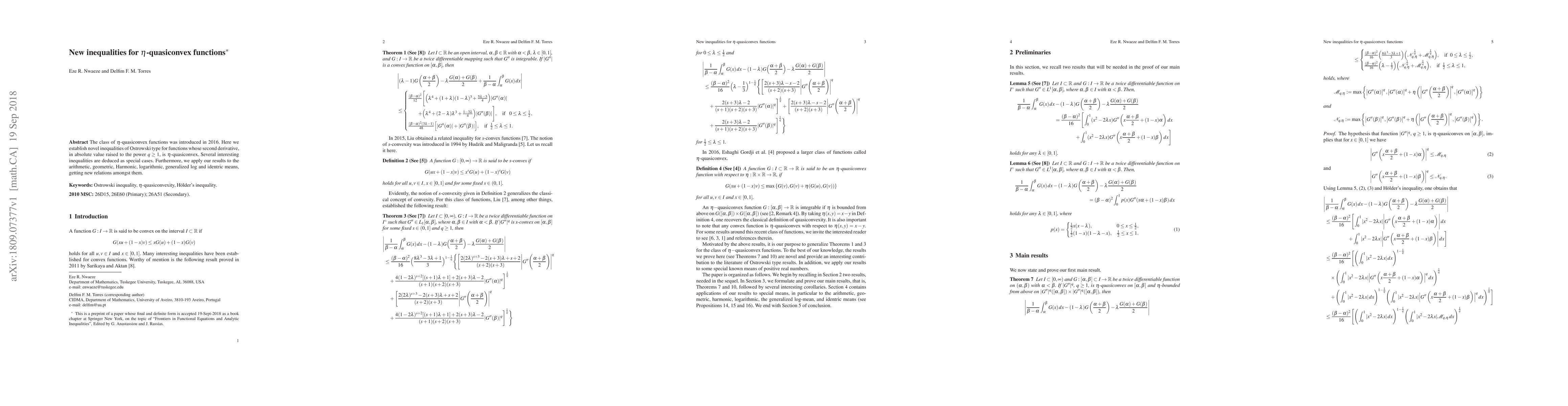 The class of $\eta$-quasiconvex functions was introduced in 2016. Here we establish novel inequalities of Ostrowski type for functions whose second derivative, in absolute value raised to the power $q\geq 1$, is $\eta$-quasiconvex. Several interesting inequalities are deduced as special cases. Furthermore, we apply our results to the arithmetic, geometric, Harmonic, logarithmic, generalized log and identric means, getting new relations amongst them.