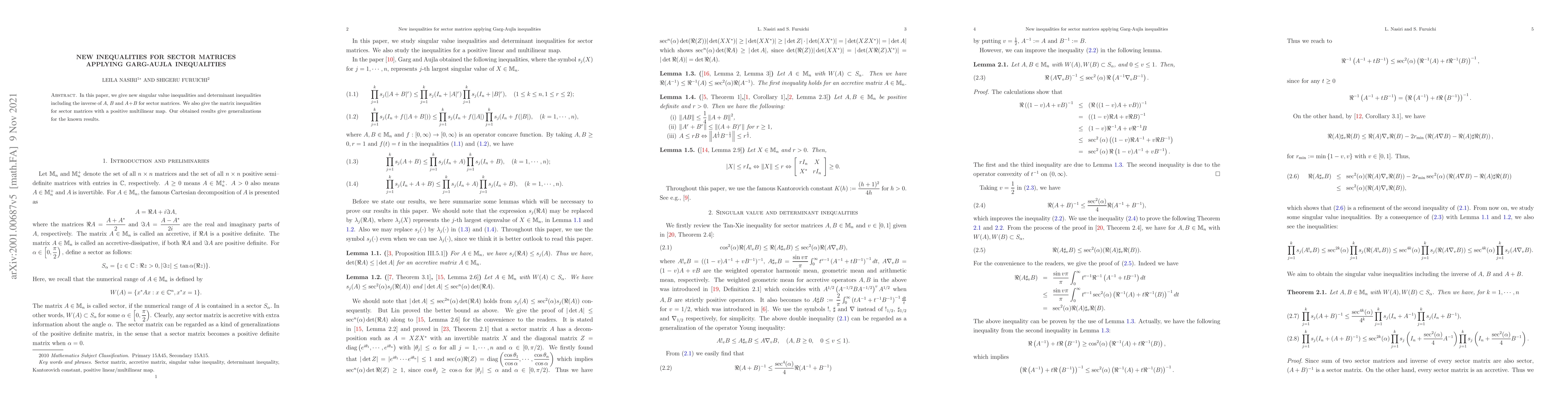 This paper introduces new inequalities for sectorial matrices, generalizing existing results, including singular value inequalities and determinant inequalities for the inverse of matrices A, B, and A+B.