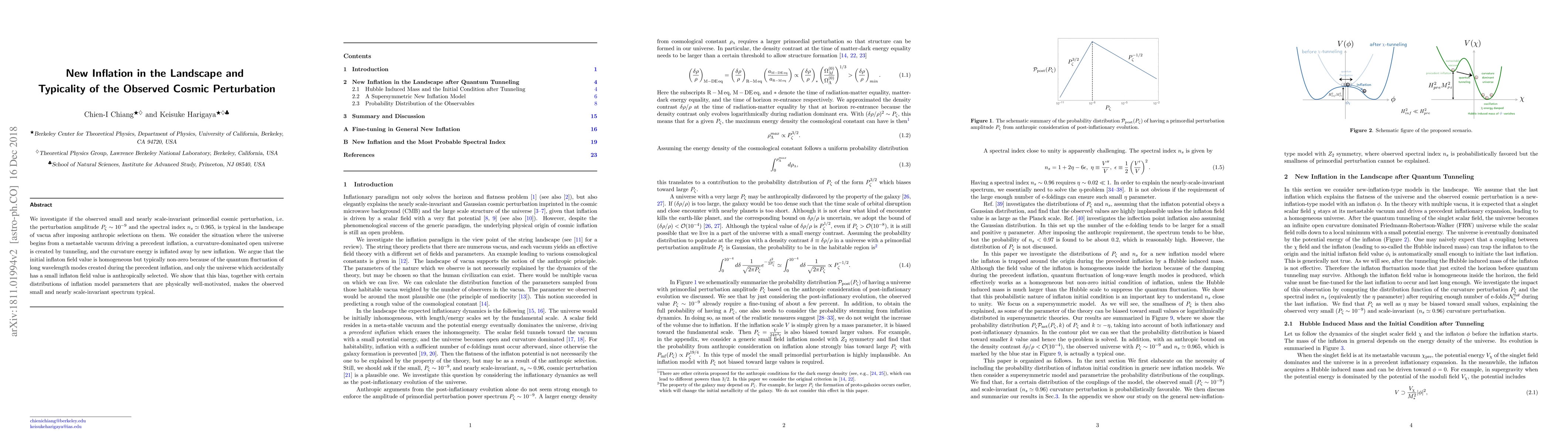 We investigate if the observed small and nearly scale-invariant primordial cosmic perturbation, i.e. the perturbation amplitude $P_\zeta\sim10^{-9}$ and the spectral index $n_s \simeq 0.965$, is typical in the landscape of vacua after imposing anthropic selections on them. We consider the situation where the universe begins from a metastable vacuum driving a precedent inflation, a curvature-dominated open universe is created by tunneling, and the curvature energy is inflated away by new inflation. We argue that the initial inflaton field value is homogeneous but typically non-zero because of the quantum fluctuation of long wavelength modes created during the precedent inflation, and only the universe which accidentally has a small inflaton field value is anthropically selected. We show that this bias, together with certain distributions of inflation model parameters that are physically well-motivated, makes the observed small and nearly scale-invariant spectrum typical.