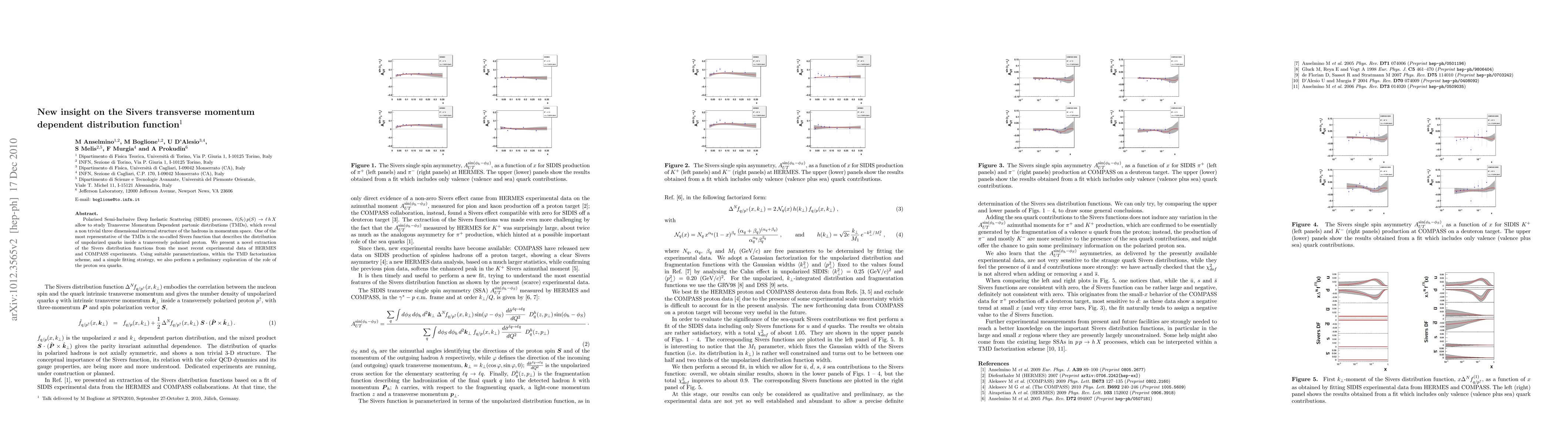 This paper presents a new extraction of the Sivers function, a key Transverse Momentum Dependent partonic distribution, from the latest experimental data from HERMES and COMPASS. It explores the role of the proton sea quarks within the TMD factorization scheme, providing deeper insight into the three-dimensional structure of hadrons.