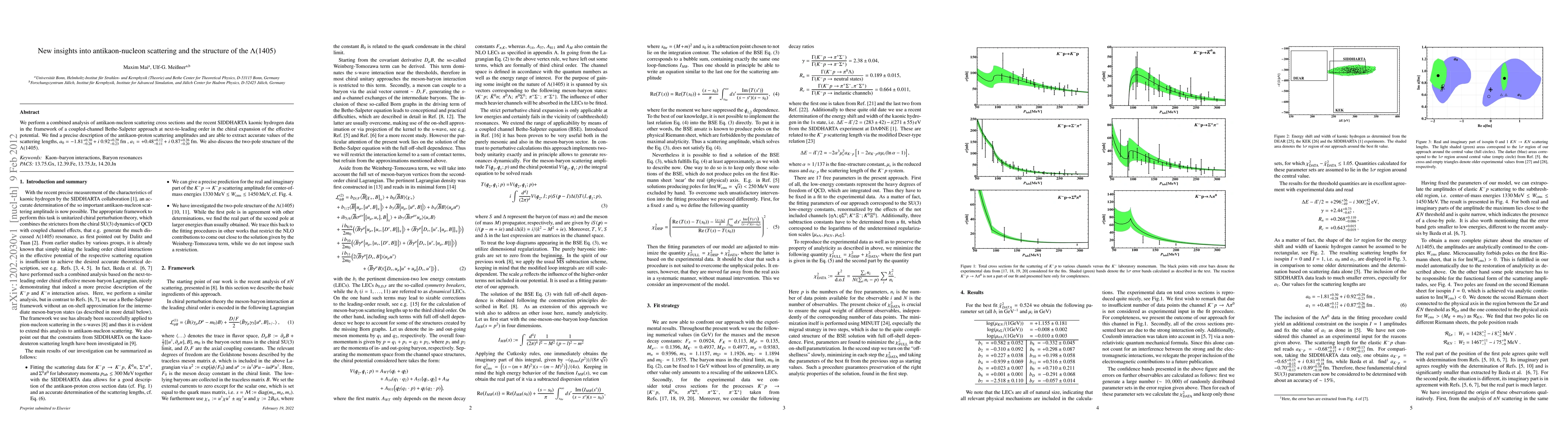 This paper combines antikaon-nucleon scattering data and kaonic hydrogen measurements to analyze the Lambda(1405) particle using a coupled-channel Bethe-Salpeter approach. The study yields precise scattering amplitudes and accurate scattering lengths, while also revealing a two-pole structure for the Lambda(1405).
