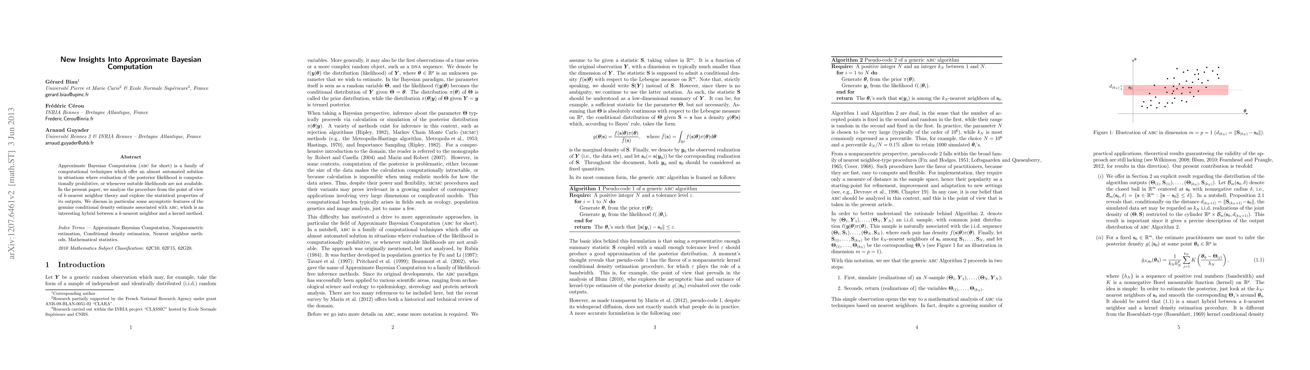 Approximate Bayesian Computation (ABC for short) is a family of computational techniques which offer an almost automated solution in situations where evaluation of the posterior likelihood is computationally prohibitive, or whenever suitable likelihoods are not available. In the present paper, we analyze the procedure from the point of view of k-nearest neighbor theory and explore the statistical properties of its outputs. We discuss in particular some asymptotic features of the genuine conditional density estimate associated with ABC, which is an interesting hybrid between a k-nearest neighbor and a kernel method.