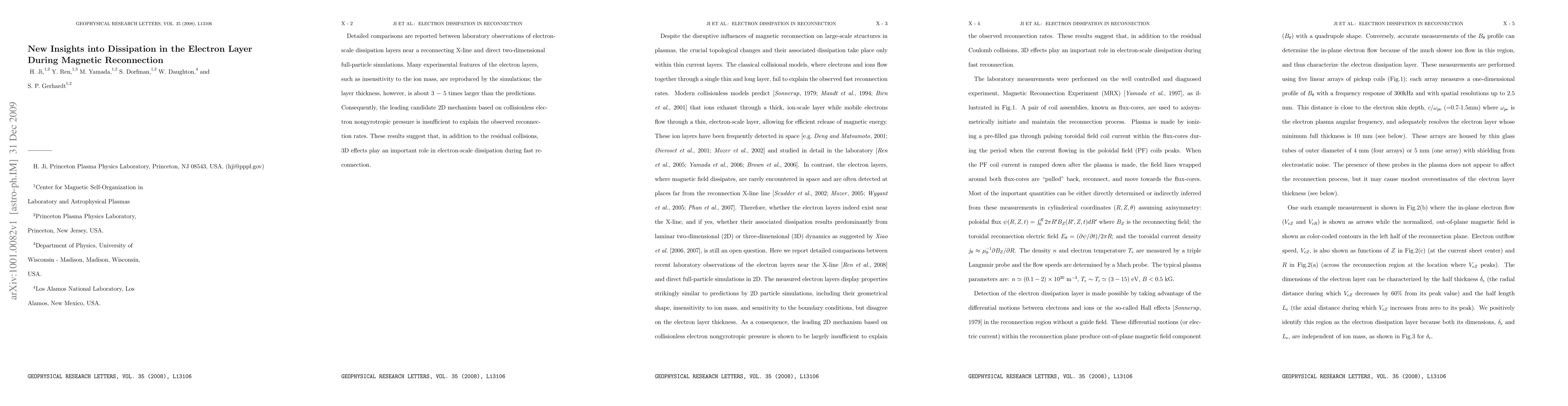 This paper compares laboratory observations with simulations of electron-scale dissipation layers during magnetic reconnection, finding that while many experimental features are reproduced, the layer thickness is significantly larger than predicted. It concludes that 3D effects and residual collisions, in addition to nongyrotropic pressure, are crucial for explaining observed reconnection rates.