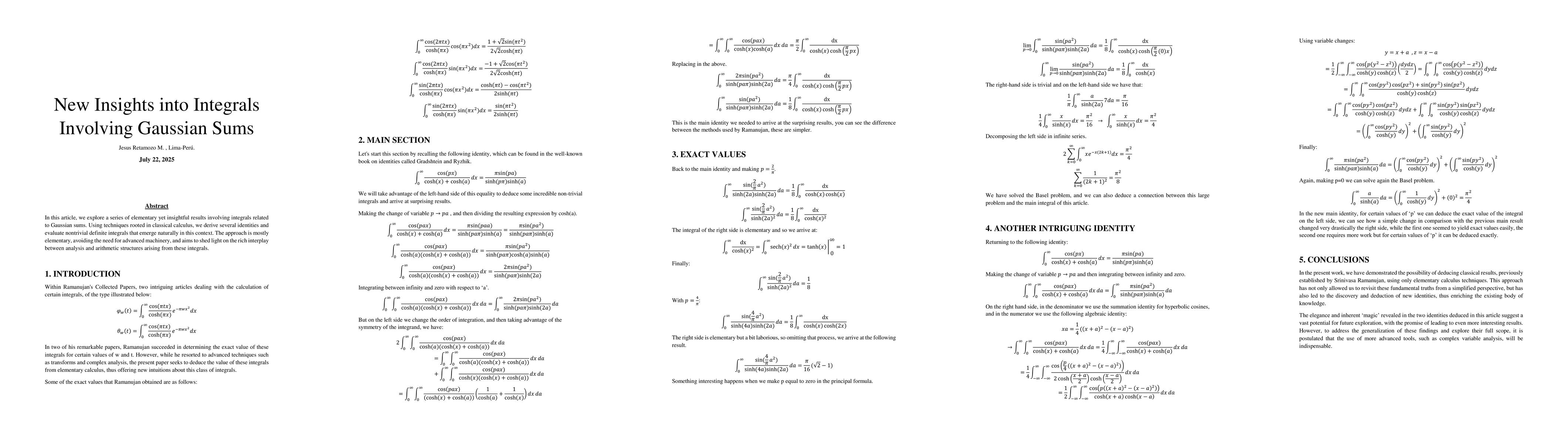 In this article, we explore a series of elementary yet insightful results involving integrals related to Gaussian sums. Using techniques rooted in classical calculus, we derive several identities and evaluate nontrivial definite integrals that emerge naturally in this context. The approach is mostly elementary, avoiding the need for advanced machinery, and aims to shed light on the rich interplay between analysis and arithmetic structures arising from these integrals.
