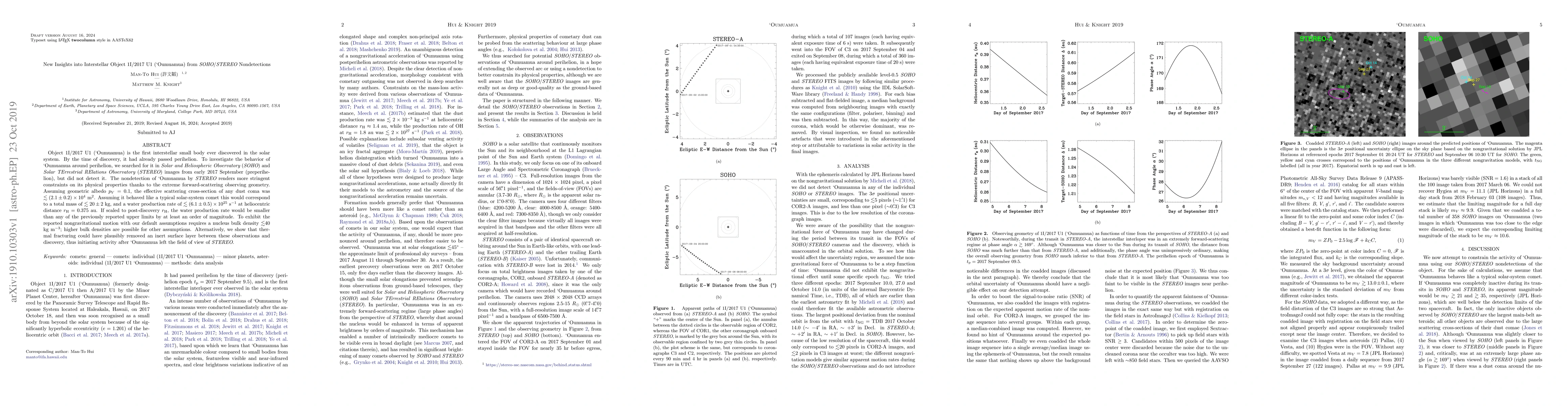 Researchers studied the object `Oumuamua, a first interstellar visitor to our solar system, using data from SOHO and STEREO telescopes before its perihelion passage, finding constraints on its physical properties.