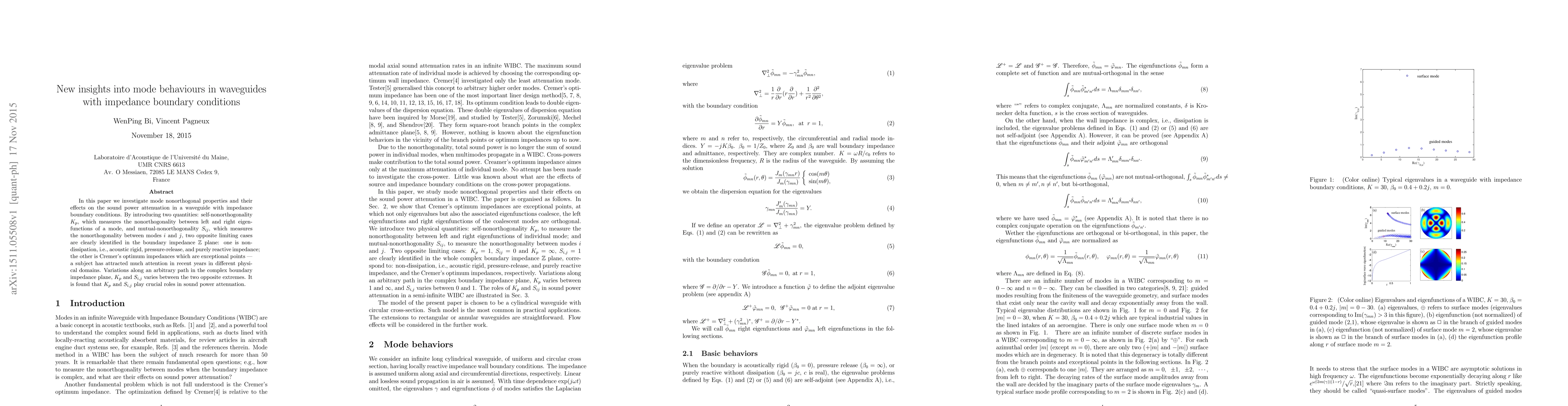 This paper explores the nonorthogonal properties of waveguide modes under impedance boundary conditions, introducing measures of self- and mutual-nonorthogonality to analyze sound power attenuation. It identifies two boundary impedance regimes influencing these properties and highlights their importance in sound power attenuation.