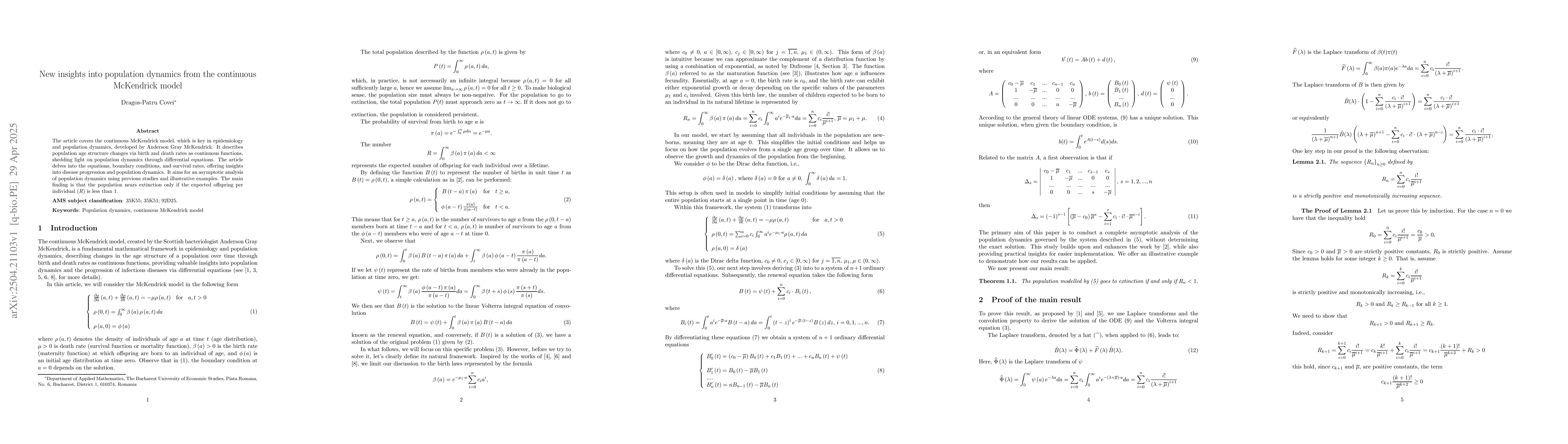 The article presents an asymptotic analysis of population dynamics using the McKendrick model, providing a clearer understanding of extinction criteria.