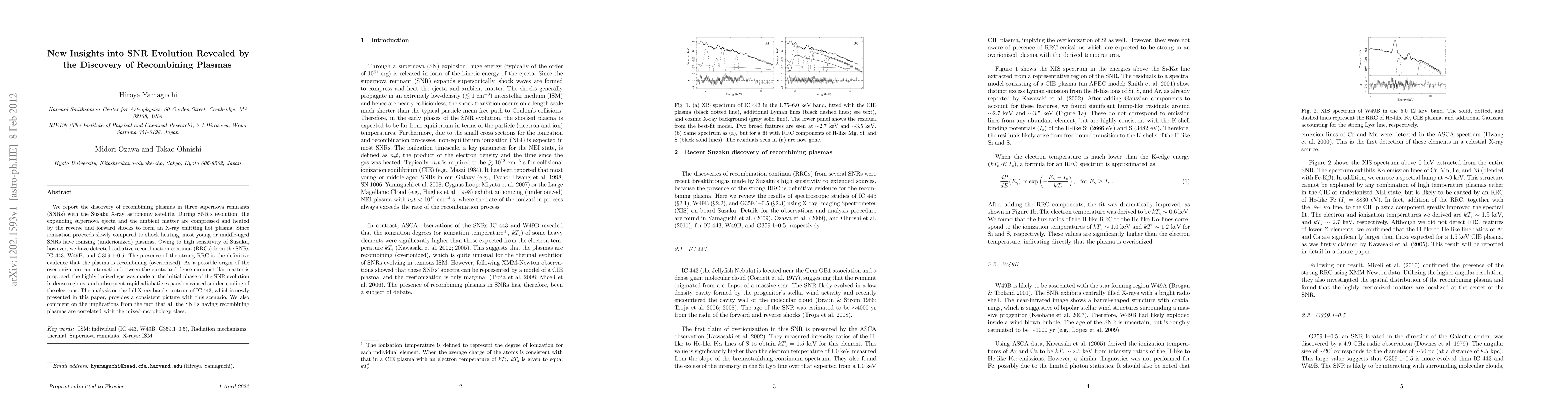 Researchers used the Suzaku X-ray satellite to discover recombining plasmas in three supernova remnants, providing new insights into SNR evolution and proposing an interaction between ejecta and dense circumstellar matter as a possible origin of overionization.