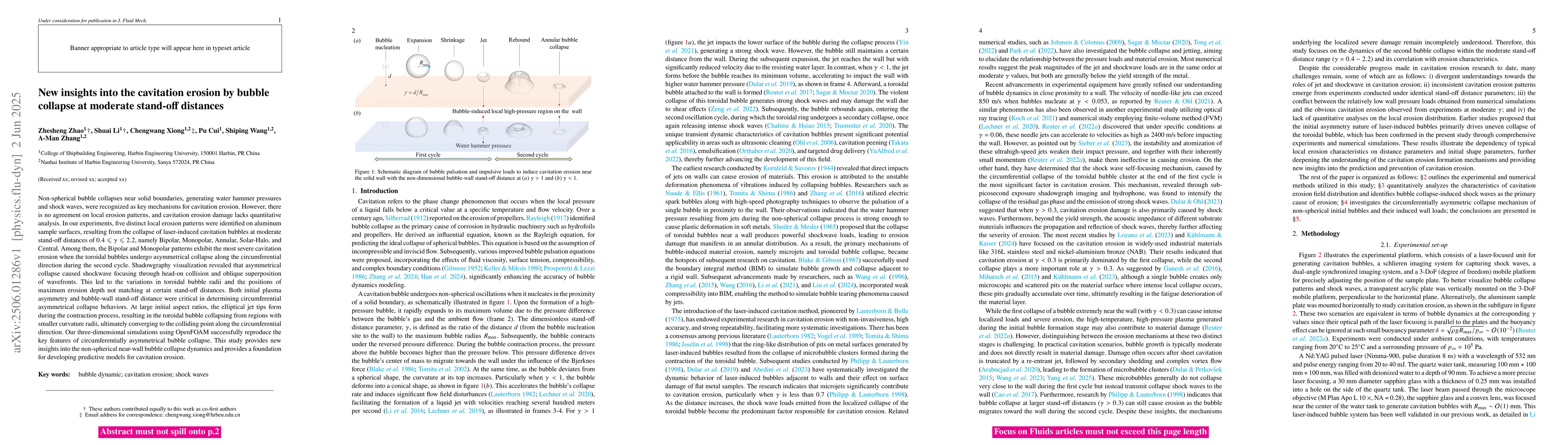 Researchers identify 5 distinct erosion patterns from collapsing bubbles near solid boundaries, with asymmetrical collapse causing severe cavitation erosion, and develop simulations to understand this phenomenon.